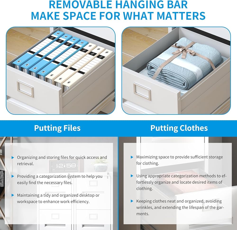 • 【تخزين ومؤسسة مرنة】 خزانة تخزين الملفات ذات الدرج العميق 17.7 بوصة ، تم تجهيز كل درج بقضيب معلق قابل للتعديل ، مما يوفر مساحة تخزين مرنة لمجلد ملفات الحجم القانوني ، والورق ، ودبر الملاحظات ، وصندوق الأرشيف ، وممتلكاتك الشخصية.