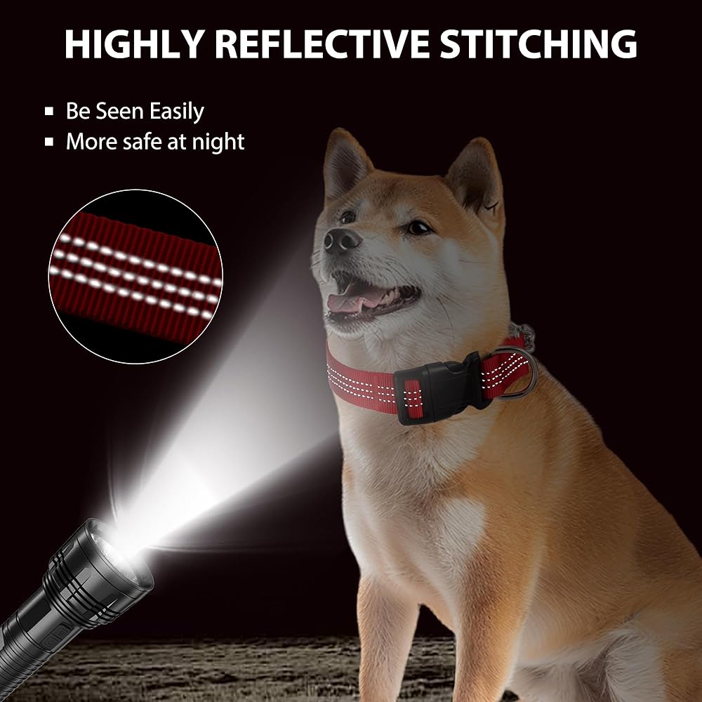 عاكسة: يتم نسج خيوط عاكسة للغاية حول طوق لمدة 360 درجة حماية شاملة ؛ زيادة رؤية وسلامة كلبك في الصباح الباكر أو في وقت متأخر من الليل ؛ حافظ على كلبك آمنًا وأكثر سهولة أثناء المشي أو الجري ؛ خاصةً للسيارات القادمة