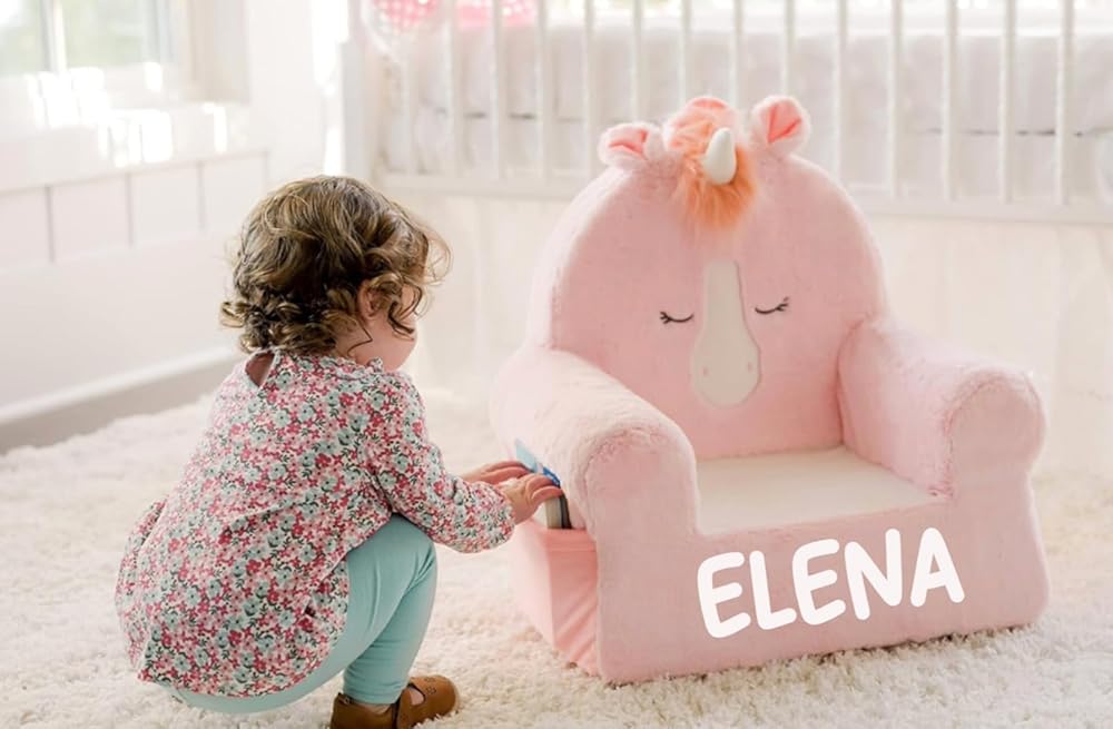 Plush Unicorn Design: This cozy toddler chair features an adorable plush animal character design, perfect for adding a playful touch to your child's bedroom, nursery or playroom.
