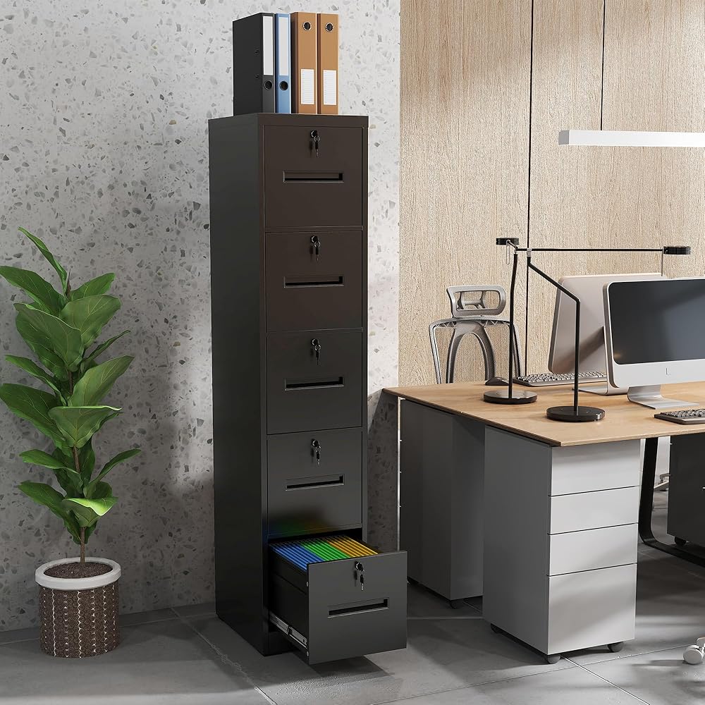 • 【تخزين فسيح وقابل للتعديل】 تتميز خزائن ملفات الدرج الخمسة هذه بأدراج ممتدة بالكامل مع قضبان زرقاء صامتة ملطخة بالكرة ، مما يوفر تجربة إيداع هادئة ومساحة تخزين واسعة. إن درج خزانة الملفات المعدنية مجهز بقضيب معلق قابل للتعديل ، واستيعاب A4 ، والرسالة ، ومجموعات الحجم القانوني ، ومرحلة للمرحلات.