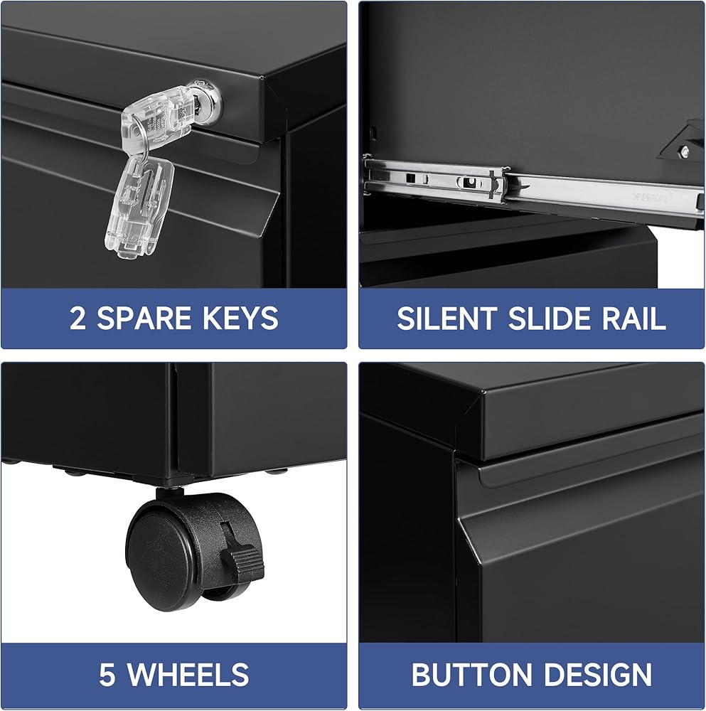 【تصميم مضاد للإمالة】 تحتوي خزانات ملفات المكتب هذه على قفل يمكنه قفل جميع الأدراج الخمسة ويأتي مع مفتاحين. يساعدك على الحفاظ على آمنة الأشياء الثمينة والوثائق. في الحالة غير المقفلة ، يمكن سحب درج واحد فقط في وقت واحد ، مما يمنع حركة الأدراج المتعددة مما يؤدي إلى تحول المركز الكلي وسقوط الصندوق.
