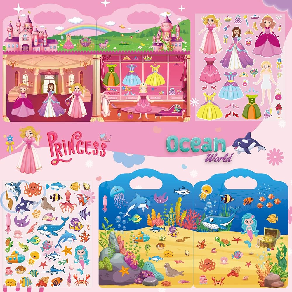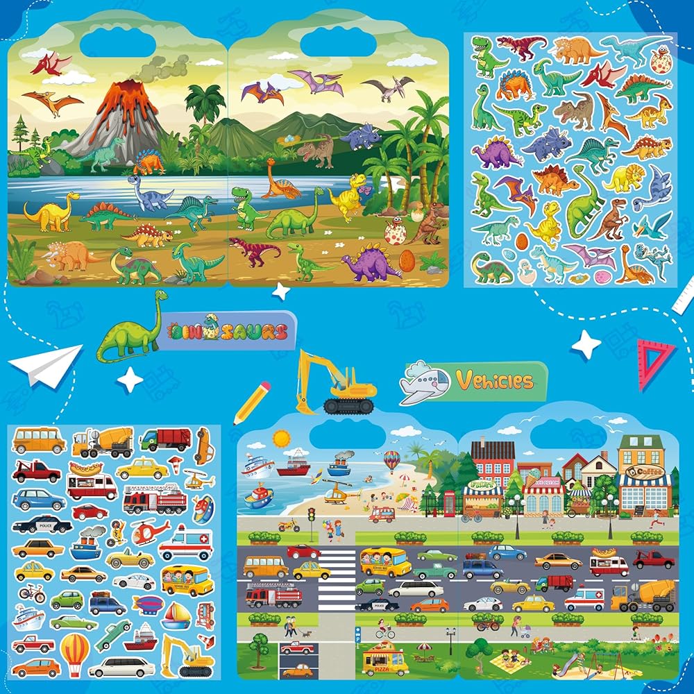 Reusable Sticker Books: Sticker Books are made of quality material with bright color printing,The sticker pages are designed to be reusable, allowing kids to rearrange and play with the stickers over and over again.