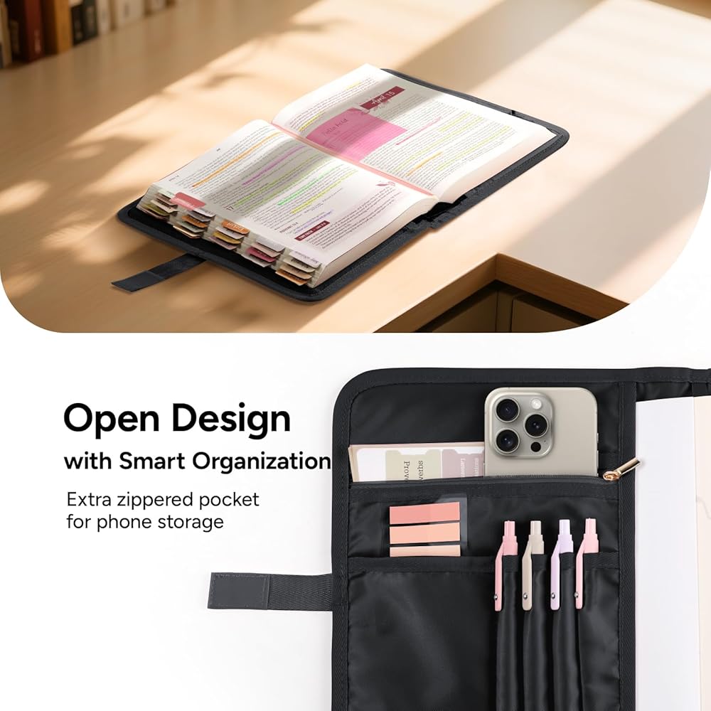 【تصميم التخزين الذكي】 الحجرة الداخلية تؤمن الكتاب لضمان أن الكتاب المقدس مستقر ولا ينزلق. يتضمن فتحة بطاقة واحدة ، 3 فتحات قلم وجيب سست ، يمكنه تخزين الكتاب المقدس والأقلام وملصقات الكتاب المقدس والهاتف الخلوي والبطاقة المصرفية والمفاتيح وغيرها من مستلزمات دراسة الكتاب المقدس ، والحفاظ على الكتاب المقدس والممتلكات الخاصة بك ، وسهل الوصول إلى دراسة الكتاب المقدس ، والكشف عن دراسة الكتاب المقدس في أي مكان ، مما يجعل دراسة الكتاب المقدس أكثر فعالية.