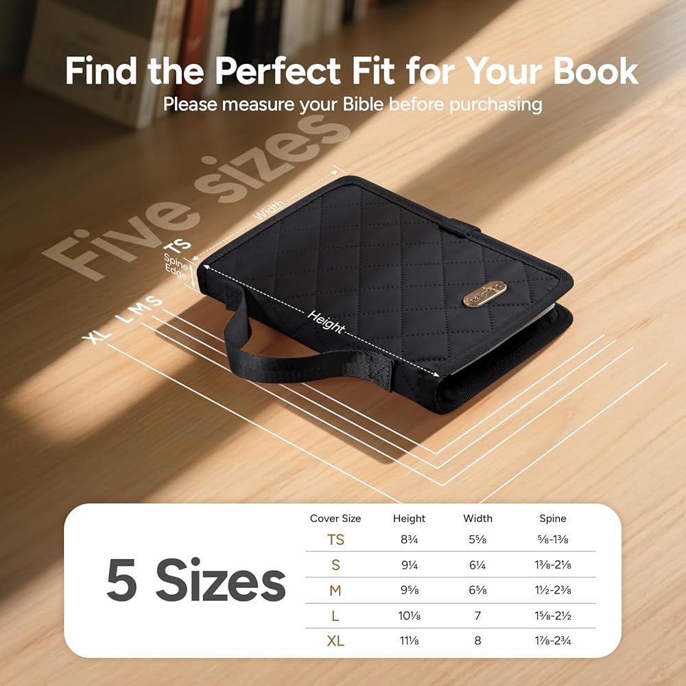 【5 أحجام متوفرة】 5 أحجام مختلفة متوفرة ، مناسبة لكل من الكتب الغلاف والورق ، يمكن تعديل عرض الغطاء لتخزين إصدارات مختلفة بمرونة من الأناجيل ، ومجموعة متنوعة من الأحجام لتختارها. لضمان أفضل ملاءمة ، يرجى قياس الكتاب المقدس بدقة ومقارنته مع الرسم البياني للحجم للتأكد من أن حالة غلاف الكتاب المقدس للنساء تناسب النصوص الخاصة بك