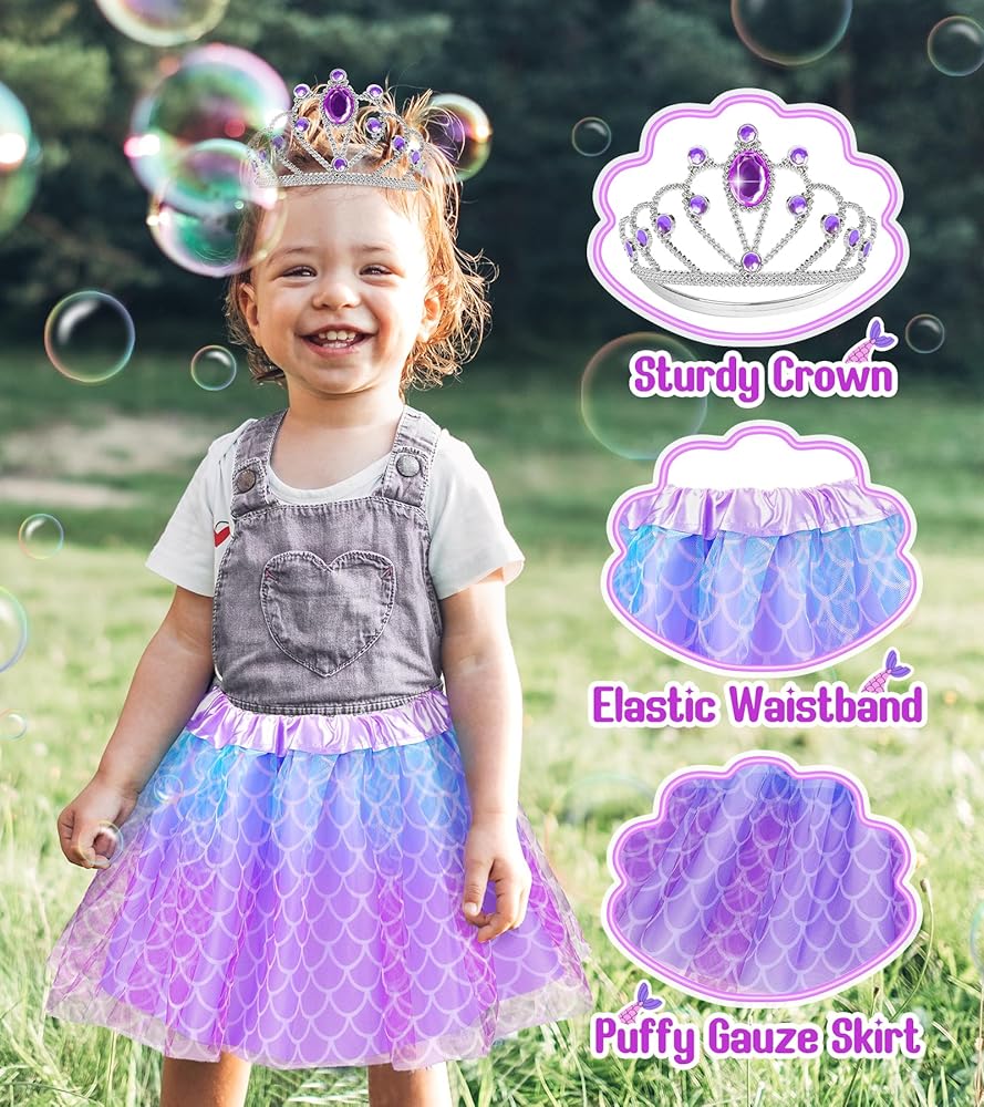 فستان الأميرة الأنيق: تنانير توتو مع نسيج جميل ، حزام مرن ، بحيث يناسب الأطفال بأحجام مختلفة. التنورة المنقوشة الوردي لها تنورة تنورة تول. تم تصميم تنورة الأميرة الأرجواني لتقليد مقياس الأسماك وبطانة البوليستر والطبقة الخارجية للتول ، بألوان زاهية وجذابة للغاية. قلادة قذيفة رائعة وأقراط وتاج تكمل مظهرًا الأميرة ، سيكون لطفلك الصغير انفجارًا مثل الأميرة