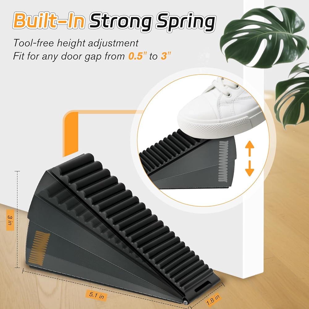 سدادات الأبواب المحملة بنابض لأسفل الباب: 5.1 "(L) × 1.8" (W) × 3 "(H) ، نابض قوي قابل للتعديل ، قم بضبط الارتفاع بمرونة لتناسب الأبواب المختلفة بشكل مريح (الفجوة 0.5"