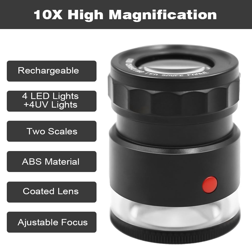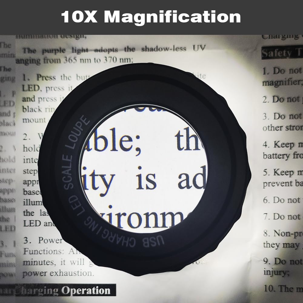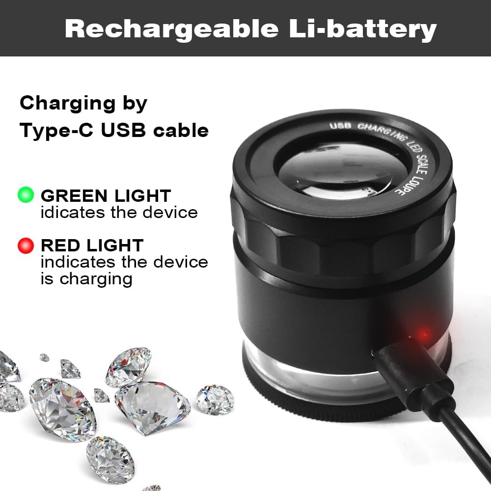 【قابلة لإعادة الشحن 10x Loupe】 لا مزيد من التغييرات البطارية! هذا المجوهرات Loupe مع شحن بطارية ليثيوم مدمج بواسطة كابل USB من النوع C للحصول على طاقة أكثر ملاءمة.
