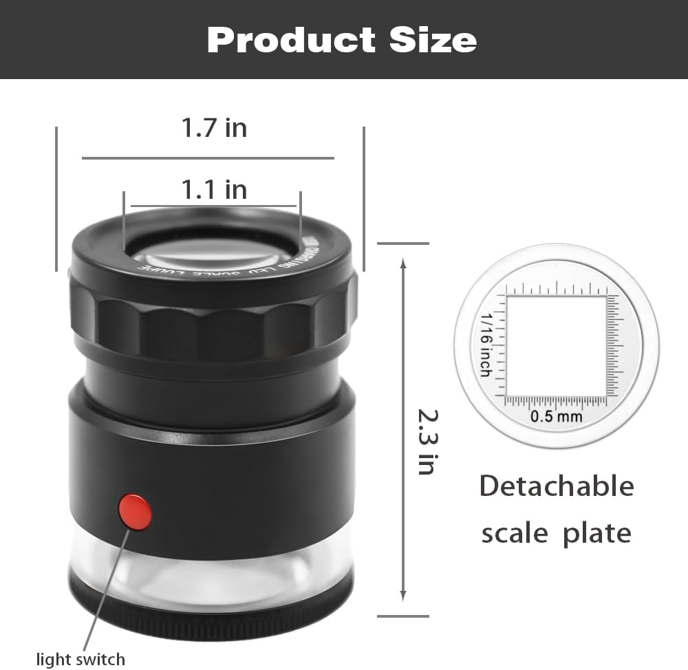 【مع اثنين من لوحات المقياس قابلة للإزالة】 مكبّر 10x Loupe المجهز بمقاييس شبكية لقياس كائن صغير. يمكن أن يكون قابلاً للفصل لأنه غير مطلوب