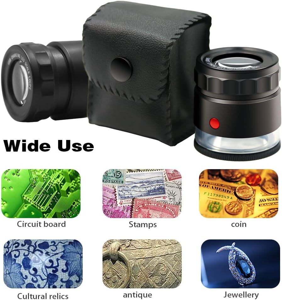 【تطبيق واسع】 Loupe صغير وخفيف. مصنوعة من مواد بلاستيكية ABS عالية الجودة مع الانتهاء من الطلاء الأسود ، متينة للغاية وليس من السهل تلف. يمكنك وضعه في حقيبتك عندما تذهب إلى الضواحي أو النصب التذكاري. إنه مكبر عمل احترافي ، رائع للأحجار الكريمة ، الطباعة ، الحفريات ، اليدوية ، إصلاحات المراقبة ، القراءة العملات والطوابع