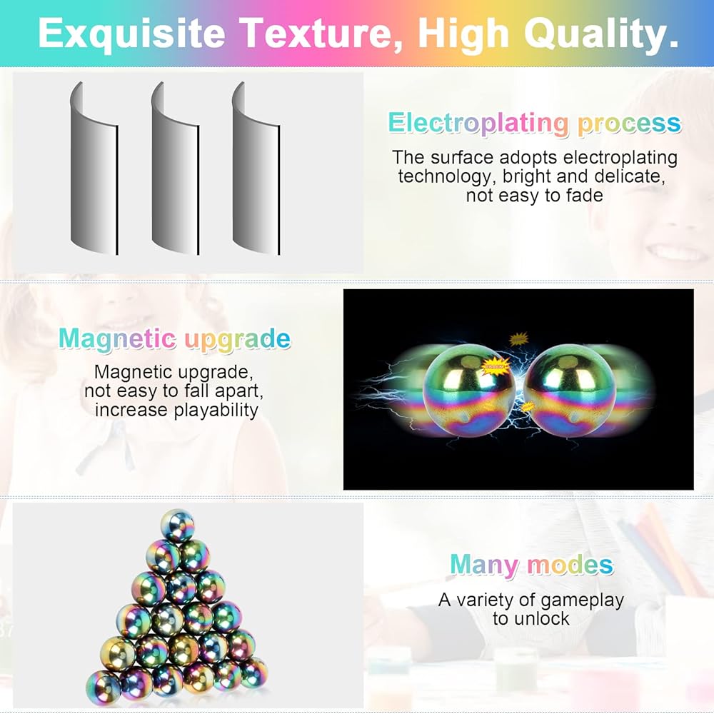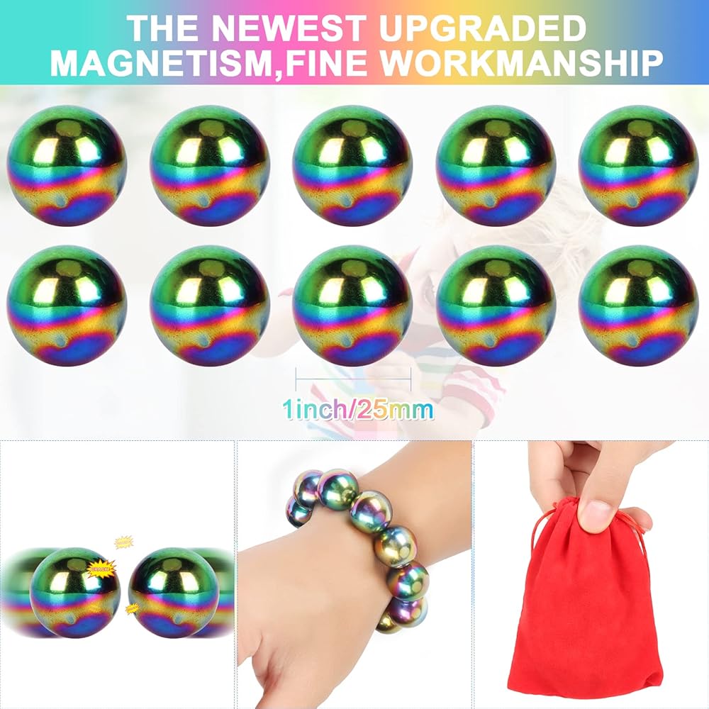 【Larger Size& Upgraded Magnetic Quality】-YISHIDANY magnetic balls are a novelty anti-anxiety and stress reliever fidget toy. Compare with most fidget toys, our magnet toys pack is a super value choice because the larger size includes 10 PCS of 25mm/1inch Large rainbow magnet. Our fidget balls are made from tough solid, which are more bright and smooth than ordinary balls. Its rounded corners are designed to keep you or your child safe. It is durable and washable.