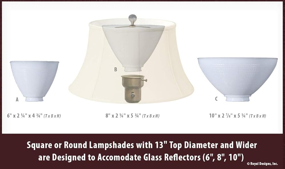This Flare Bottom Outside Corner lamp shade is a part of Royal Designs, Inc. Royal Designs has been in the lamp shade business since 1993 with their multiple shade lines that exemplify handcrafted quality and value. Our basic lamp shade collection is perfect for anyone looking for simple yet stunning lamp shade. The flare bottom outside corner lamp shades are available in a variety of shapes, sizes, colors, and styles. Our basic shade will blend into your home or office interiors and act as an intriguing decor piece. Take a pick from our Cut-corner or the elegant V-notch style, to add the touch of the appealing atmosphere for either reading, romance, or dining. Specification: Brand: Royal Designs, Inc. Type: Scalloped Lamp Shade Material: Fabric Shape: Scalloped Color: Beige Size: 9 x 16 x 12 inchs Bulb Type: Incandescent Max Bulb Wattage: 100 watts