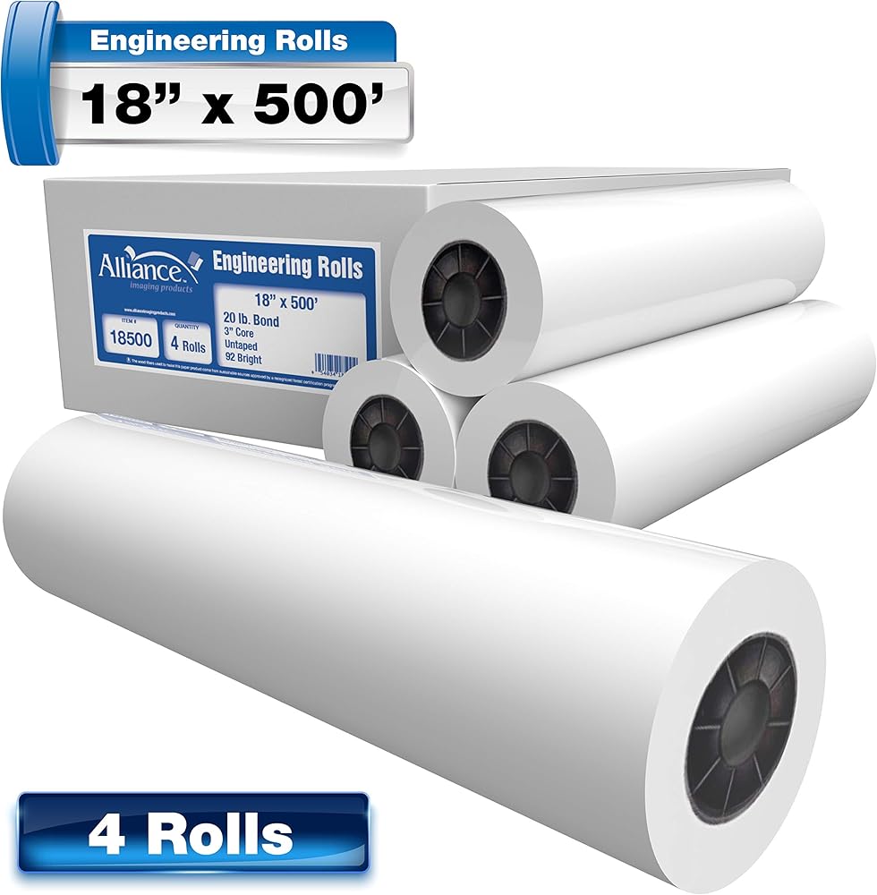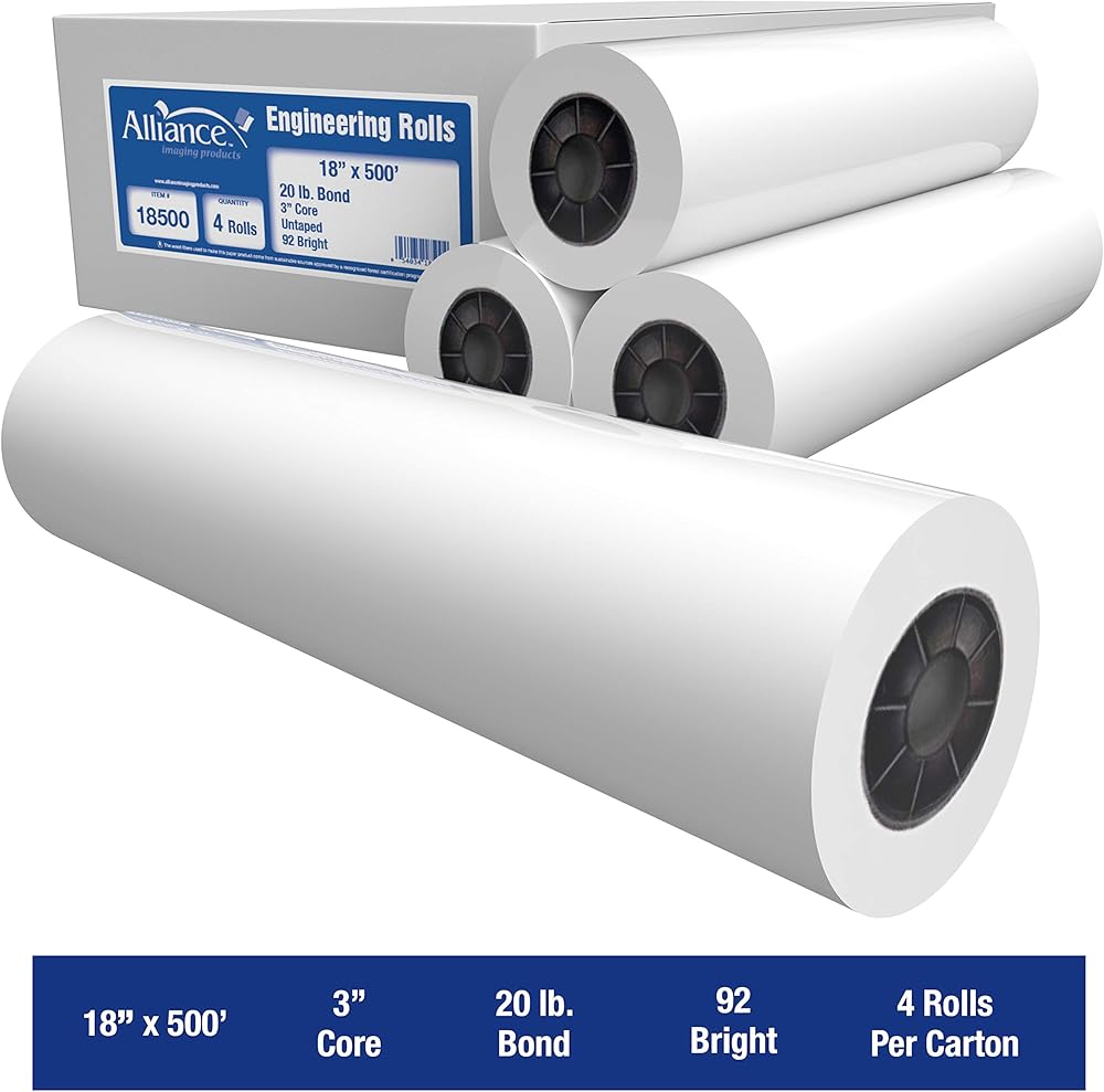 لفائف الورق ذات التنسيق الواسع تحالف ، 20 رطلاً مع 3 "جوهر (17 في × 500 قدم | 3" جوهر ، 20 رطل | 4 لفات)