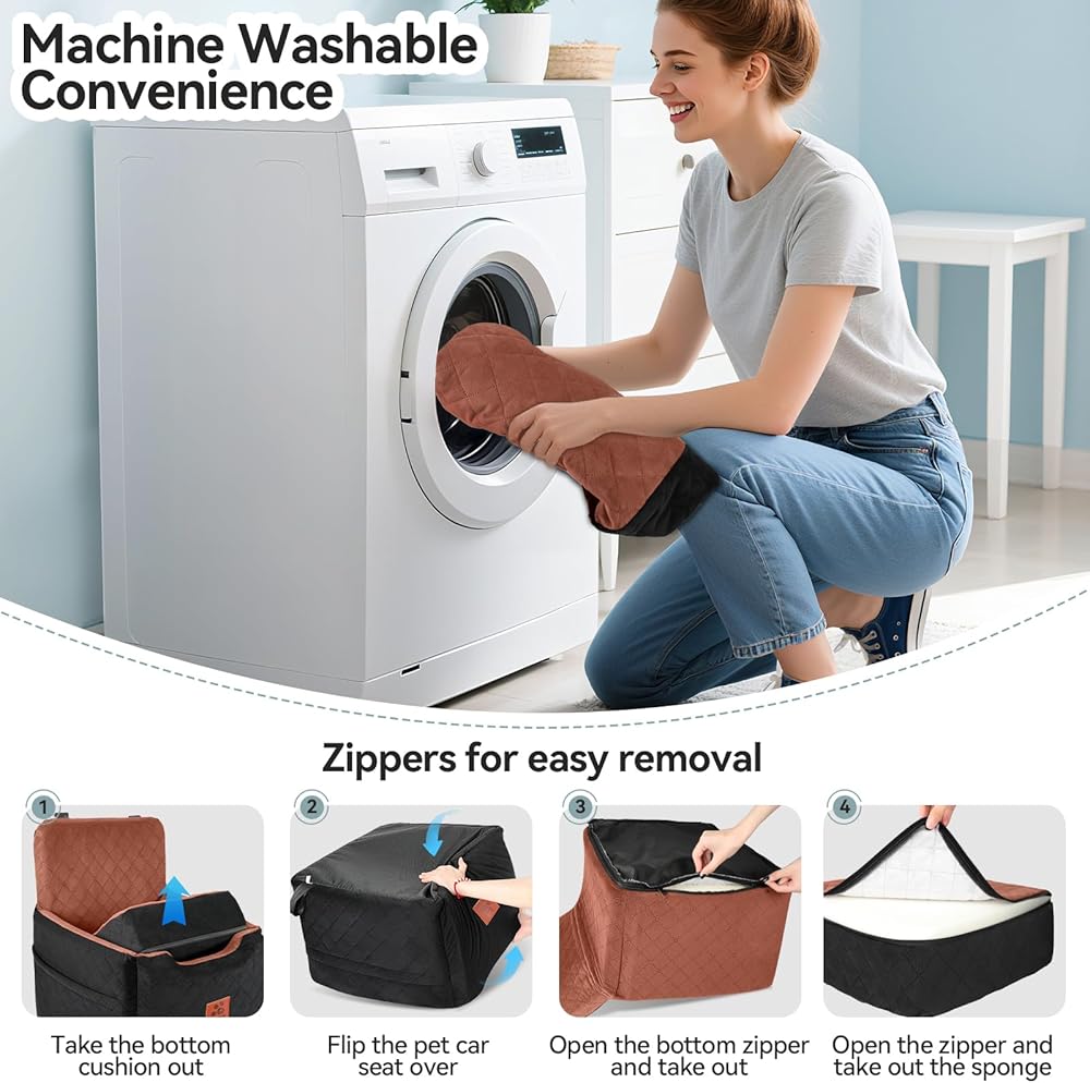 قابلة للفصل وقابل للغسل: من السهل جدًا تنظيف مقعد السيارة للحيوانات الأليفة ، بتصميمه القابل للفصل بالكامل. يحتوي سرير الكلب على سحاب منزلق مدمج ، فقط قم بإزالة كل الرغوة ، ثم غسل أغطية المقعد. إن الجزء السفلي من مقعد الداعم مقاوم للماء ، وحماية ضد الحوادث. يرجى ملاحظة أن الرغوة الداخلية غير قابلة للغسل.