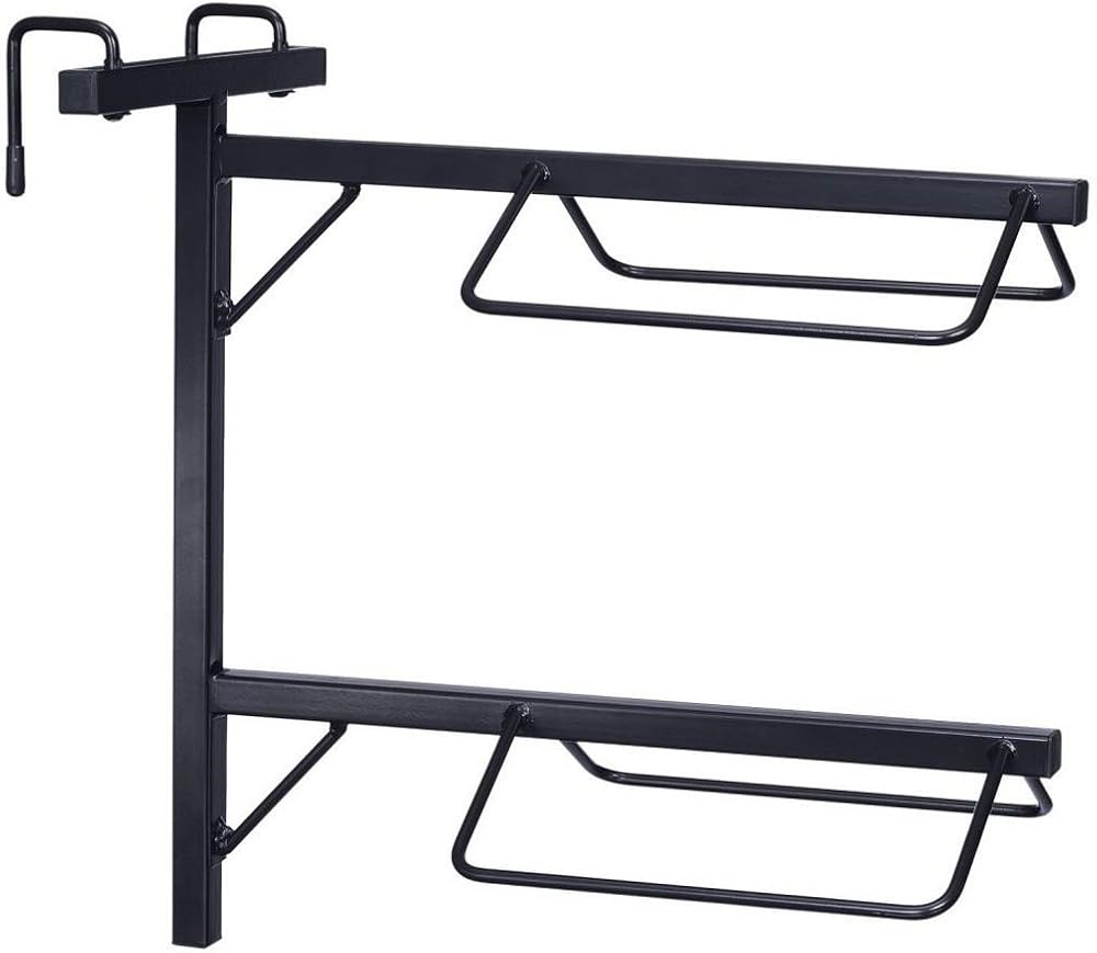 Breakdown Traveling Saddle Rack Perfect for horse shows or to conveniently hang your saddle in your barn aisle. Breaks down into two pieces for easy travel and storage. Swivel hooks fit over any stall or fence. Also can be permanently mounted to walls through convenient pre-drilled screw holes. Features: Breaks down into two pieces Swivel hooks fit over any stall or fence Can be permanently mounted Convenient for traveling Comes in Single or Double models