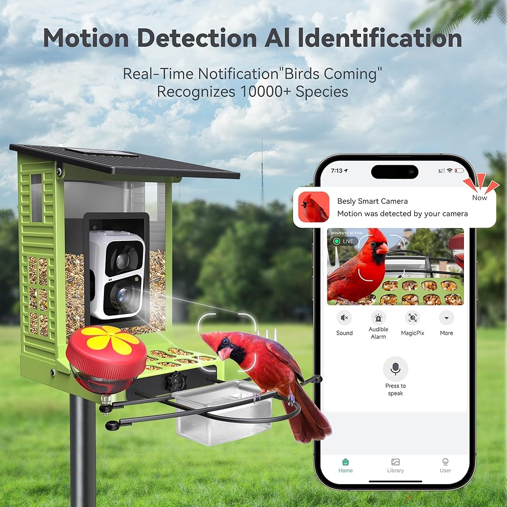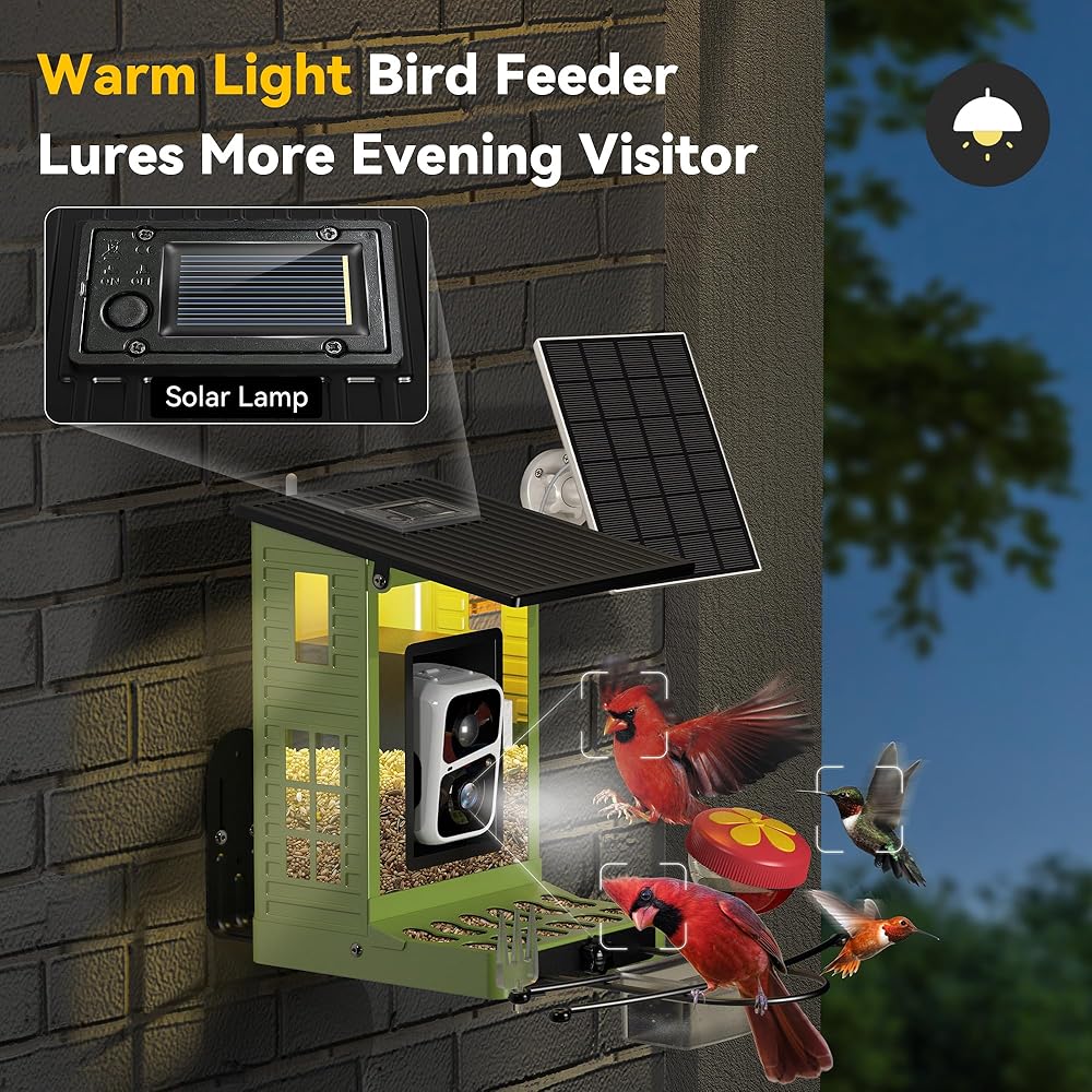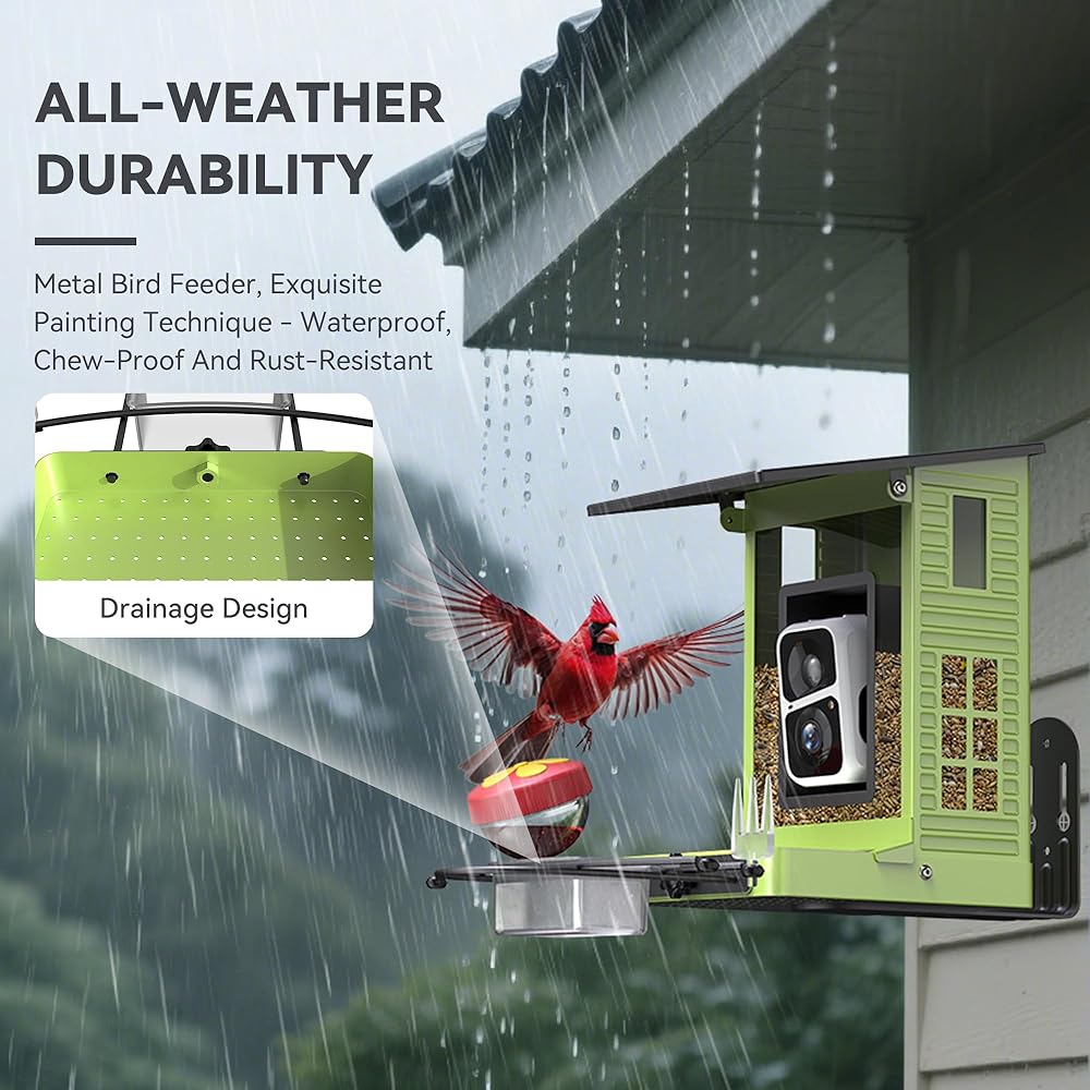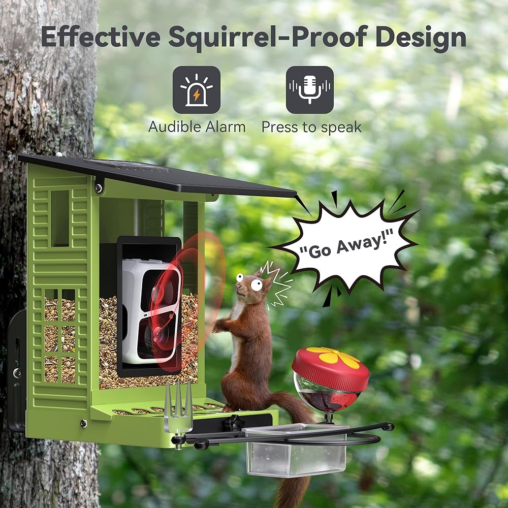 • شاهد أصدقائك الريش في أي وقت في أي مكان: استمتع بمشاهدة الطيور المباشرة على هاتفك بدقة مذهلة 2K HD وعدسة بزاوية واسعة 142 درجة. سواء كنت في المنزل أو بعيدًا ، لا تفوت أبدًا زيارة واحدة ، مما يجلب الطبيعة إلى أطراف أصابعك. بالإضافة إلى ذلك ، يخيف الضيوف غير المرغوب فيه على الفور مثل السناجب أو الراكون عن بعد لمراقبة الطيور الخالية من القلق