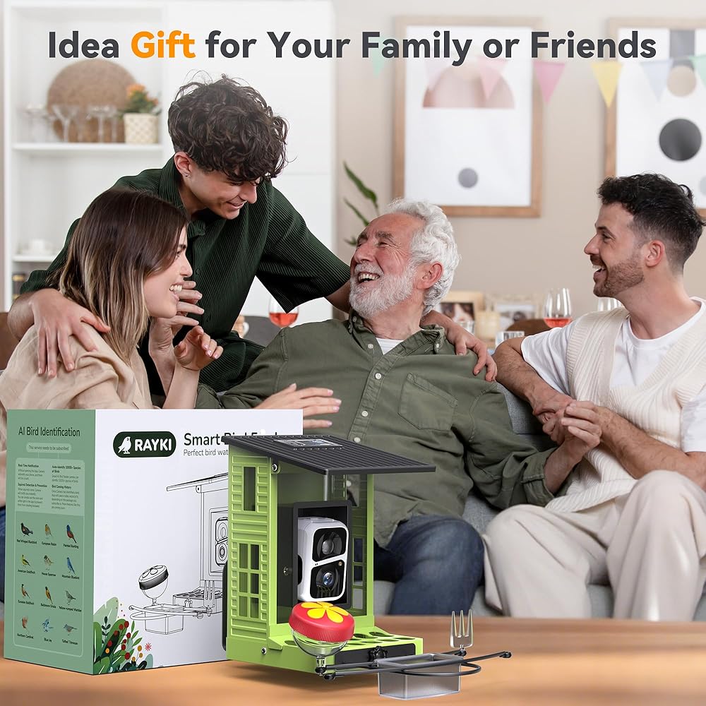 وحدة تغذية الطيور الذكية التي تعمل بالطاقة الشمسية من Rayki مع كاميرا، تحديد الذكاء الاصطناعي مع أضواء الطاقة الشمسية، كاميرا 2K HD وواي فاي، تنبيهات الوصول الفوري، هدية مثالية لمحبي الطيور