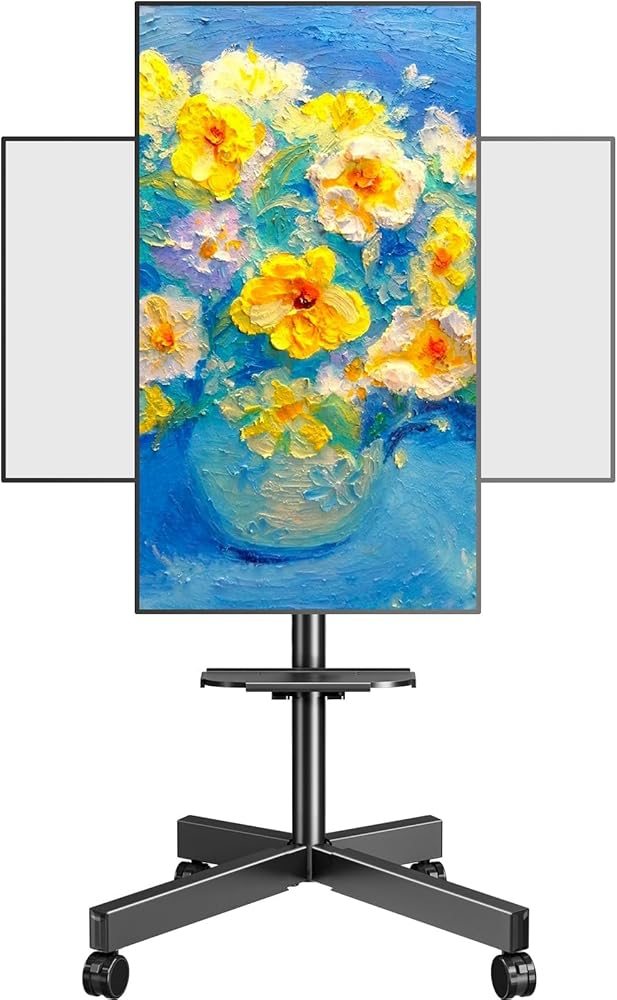 صورة لدوران المناظر الطبيعية: التبديل من شورتات يوتيوب إلى أفلام شاشة عريضة في ثوان! يوفر حامل التلفزيون المتحرك الدوار هذا التناوب على الشاشة بسلاسة 90 درجة - على سبيل المثال لمحتوى Tiktok أو العروض التقديمية أو مكالمات التكبير. يتيح التناوب كتعديل ما بعد التثبيت تسوية تلفزيونية مثالية. التكيف مع المحتوى الخاص بك ، لا توجد أدوات مطلوبة
