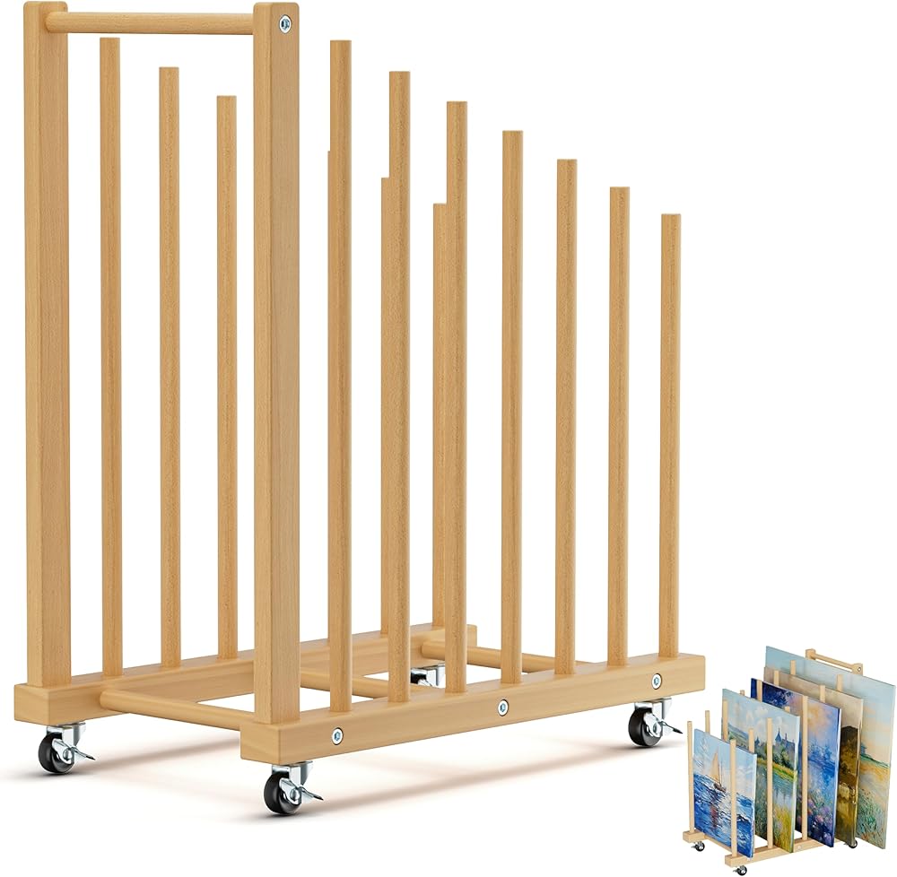 رف التخزين الفني مع مقبض ، رف الطلاء للفنون مع عجلات العجلات ، تخزين القماش الخشبي للفنون الخشبية لألواح القماش ، لوحة ، إطار للاستوديوهات الفنية ، الأعمال الفنية ، المعرض