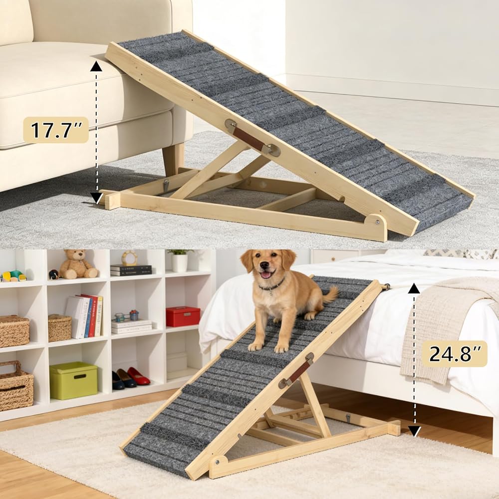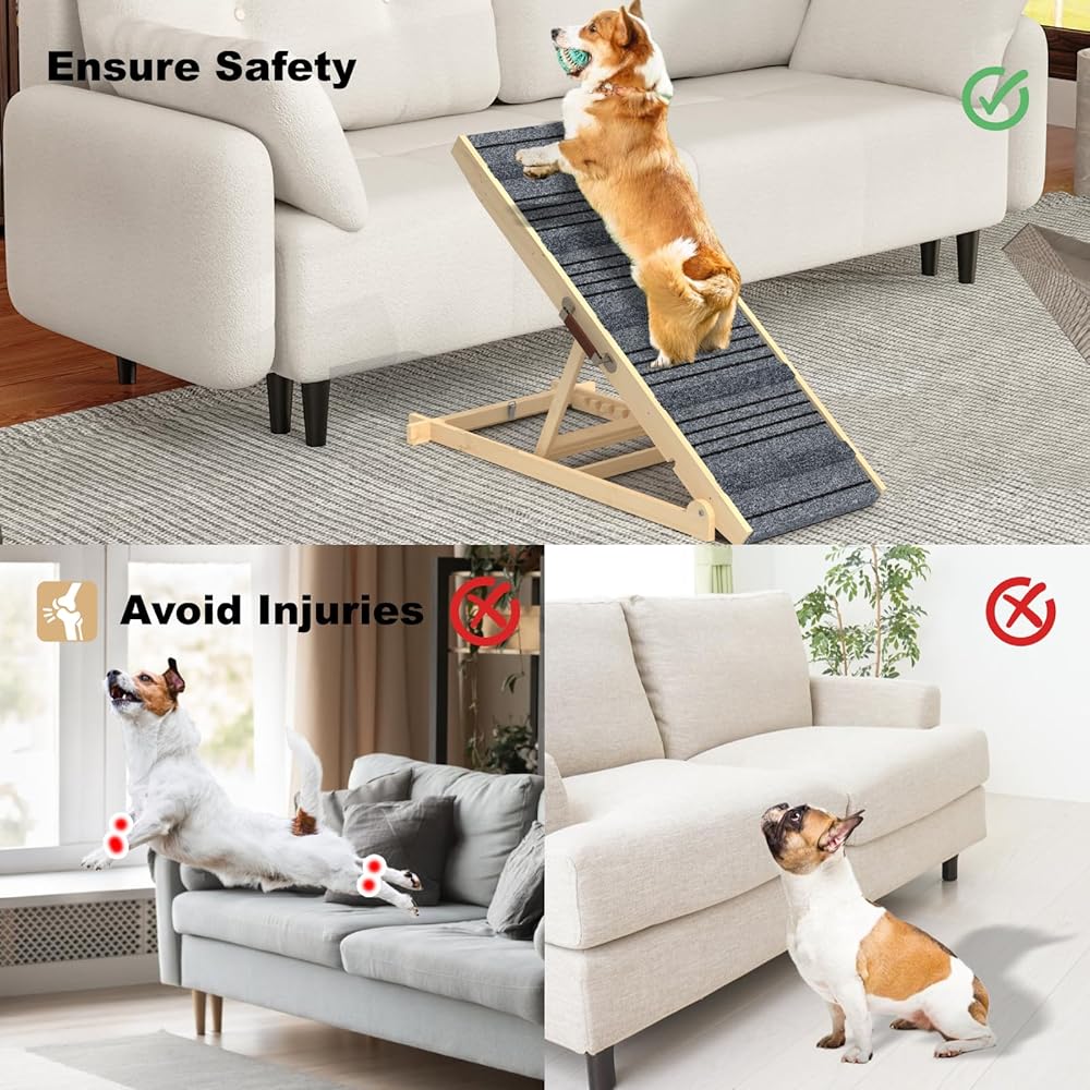 4 adjustable heights are suitable for most beds and sofas. The anti-slid pad can effectively protect your furry friend's paws from harm.