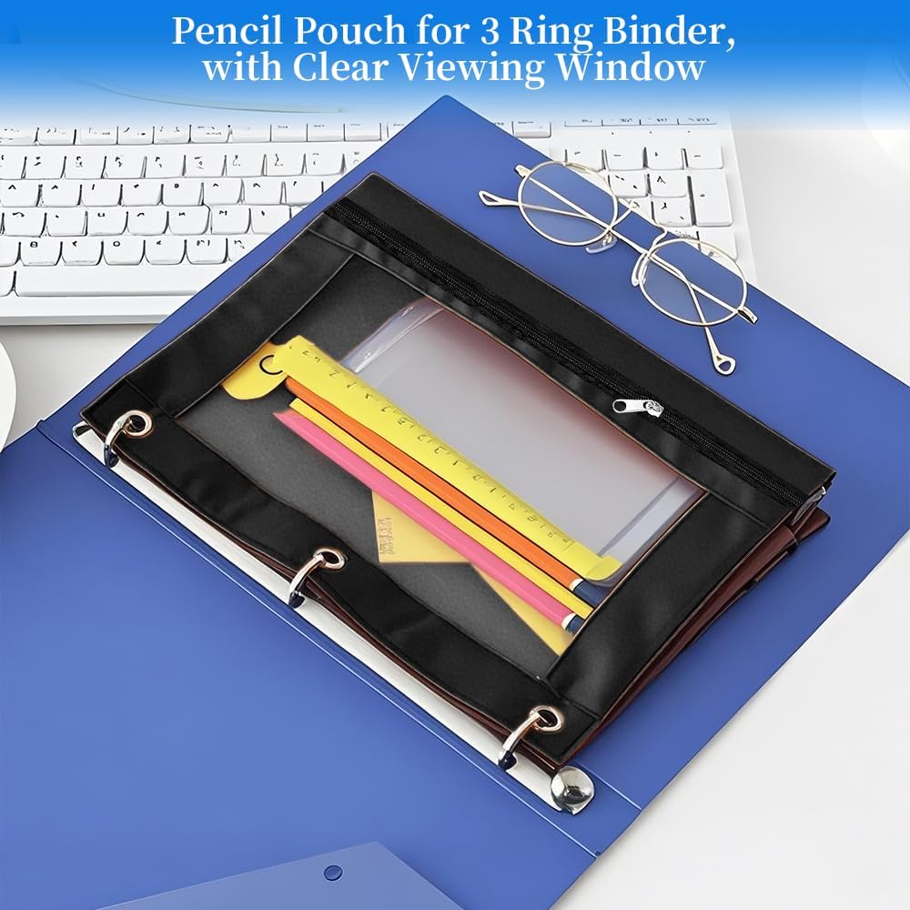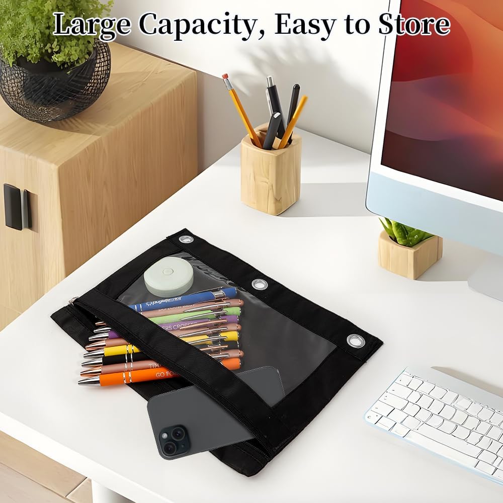 Pratical Design: Our zipper pencil pouch adopts a 3-hole design, suitable for standard 3 ring binders, and can be firmly fixed in the binder without easy falling out. The front of the 3 ring binder pencil pouch is covered with transparent PVC plastic, and this transparent window design allows you to easily identify the items inside, which you can see the contents clearly without opening or closing, and quickly find the stationery you need.
