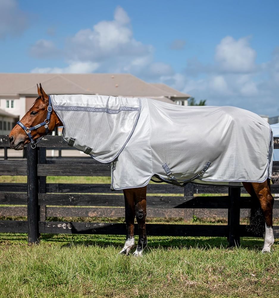 Amigo Bug Rug Plus Fly Sheet Offering exceptional value, fly and UV protection, the Amigo(R) Bug Rug Fly Sheet is a soft, breathable, and lightweight rug with strong sun-reflecting properties. This rug features a supersized tail flap and a detachable hood, giving your horse exceptional coverage and protection. The front leg arches allow for greater freedom of movement, and the double straight front closure and two adjustable cross surcingles give you peace of mind on a secure fit. The shine enhancing mane, shoulder and tail flap help reduce friction. Compatible with our waterproof fly rug liner, you can keep your horse comfortable and dry on showery days, even when the flies reappear when the rain stops. A versatile rug at an affordable price to meet your budget and needs. Features: 2 Crossed surcingles Breathable Detachable hood Liner compatible Straight front closure Tail strap with tail string 65% UV protection Material: The knitted polyester fabric is soft, absorbent and strong with sun reflecting properties. Care: Washing instructions We would suggest that you have your sheets professionally cleaned. Ensure all velcro is closed and clips/straps are attached prior to washing. Line Dry Only / Air dry only away from a heat source. Storage instructions Once dry, fold neatly into a breathable storage bag. Store in a cool, dry place away from any moisture or damp areas, avoiding excessive heat and UV exposure. Your original packaging can be used as an excellent bag for multiple purposes such as an equestrian gear bag.
