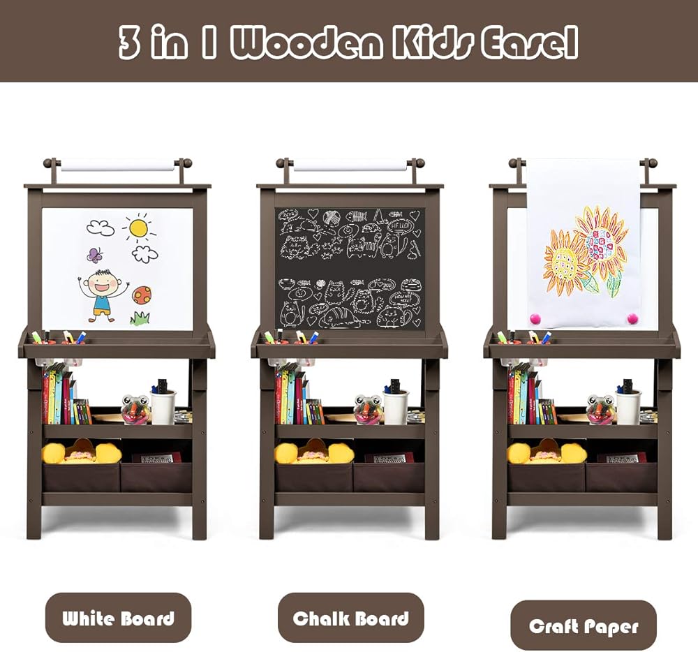 【3-in-1 Art Easel】 يتميز هذا الحامل الخشبي لوح الرسم على الوجهين ولفافة ورقية منسق مع الورق 16.5 قدم. يمكن رسم Blackboard مع الطباشير للأعمال الرائعة ، في حين أن السبورة البيضاء تسمح للأطفال بالطلاء بقلم علامة للاستخدام الخالي من الغبار. يمكنهم أيضًا طرح الورق وإصلاحها بخرز مغناطيسيين ، مما يخلق مساحة رسم إضافية.