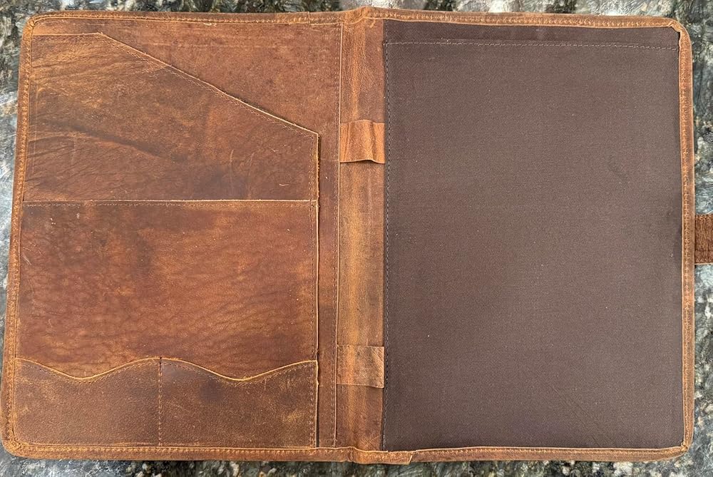 Full Grain Leather Portfolio: This leather padfolio is made of full grain Indian Buffalo leather, which is the highest- quality leather. It's more durable and You can smell real leather. This Large Portfolio-Organizer is handcrafted from 100% Top Grain Leather. High quality gives you a classic impression when being carried for all your valuable days.