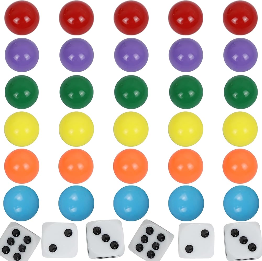 Qryovsa 14mm 30 Replacement Marbles 5 Each of 6 Colors for Wahoo Dirty Marbles Board Game Colorful Marble 6 Dice and Storage Bag Included(14mm/0.55inches)