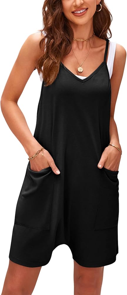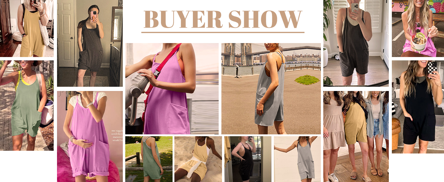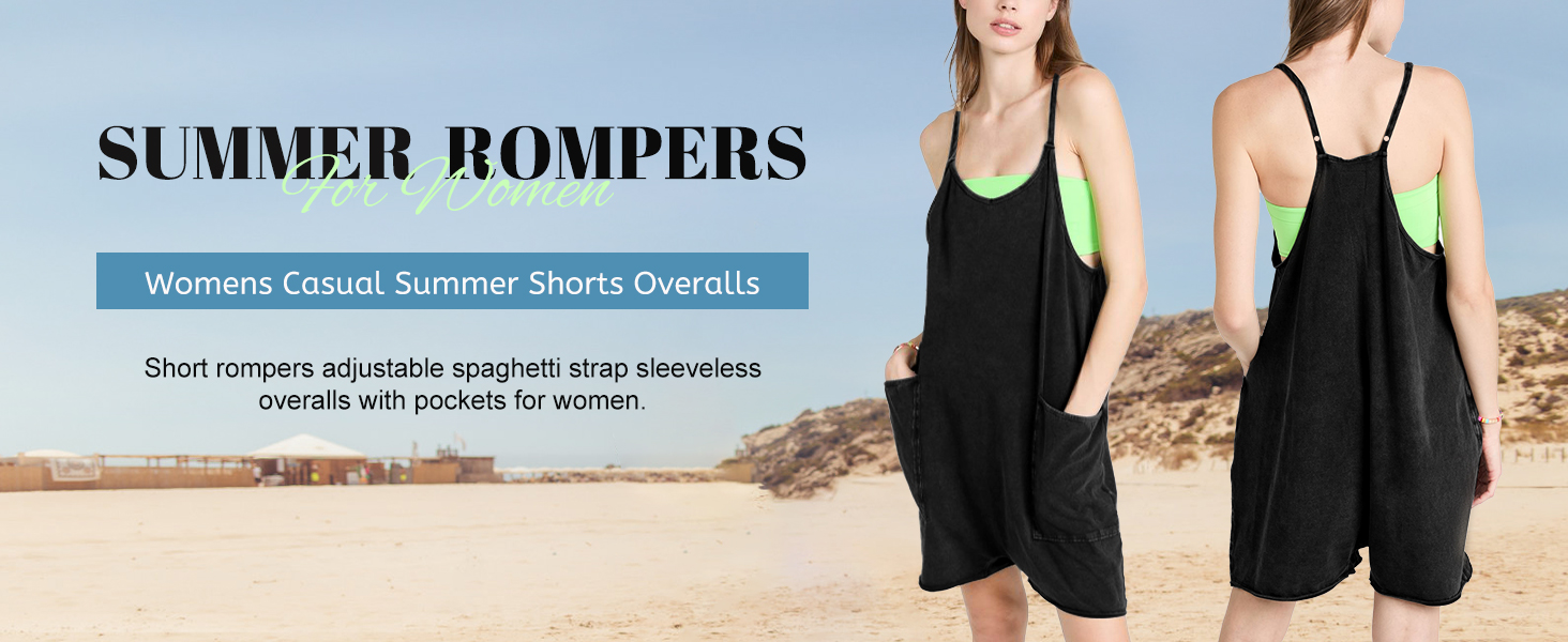 جمبسوت قصير من قطعة واحدة يتميز برقبة على شكل حرف V وأشرطة قابلة للتعديل وجيوب كبيرة ومواد قابلة للتمدد ونمط فضفاض، مناسب للعمل والشارع والشاطئ والحفلات والمدرسة والرحلات والأمومة والارتداء اليومي