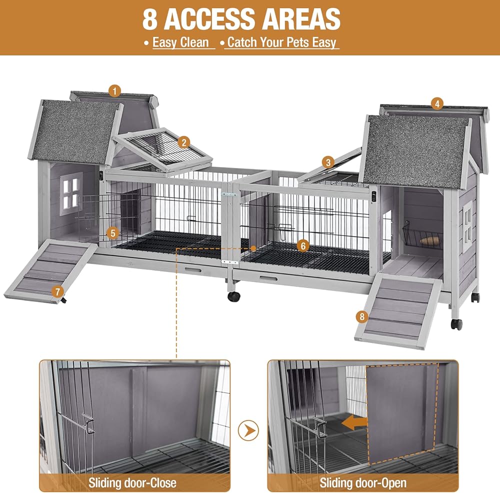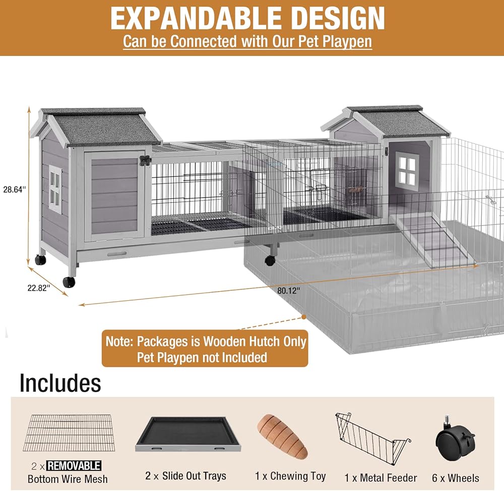 【مساحة النشاط 10.4 قدم مربع】 قفص أرنب قابل للاستنشاق مع منزل نائم وركض ، وتوفير مساحة فسيحة لحيواناتك الأليفة.