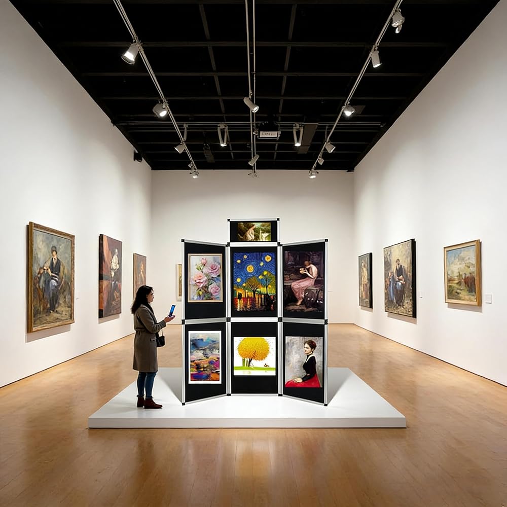 360 درجة الدوران ثنائي الاتجاه: يمكن تدوير شاشة لوحة العرض البالغة 6 أضعاف 360 درجة ، والتصميم القابل للطي يجعل السفر أقل الإجهاد بين الأحداث لتلبية احتياجاتك لعرض الملصقات وغيرها من عناصر من زوايا مختلفة ؛ وتتحول لوحة المعرض من لوحة إلى شاشة من البرج الثلاثي إلى الحائط ، و 6+1 لوحات تنشئ عرضًا عالي الرؤية