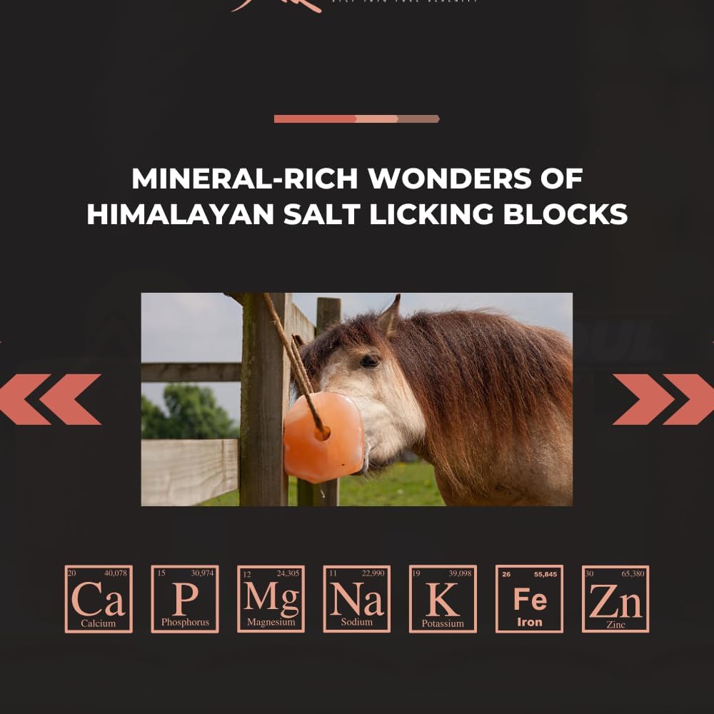 100% Natural Himalayan Salt Lick Block for Livestock Our Himalayan Salt Lick Block is a naturally occurring source of essential minerals for livestock. Carefully harvested from the ancient salt mines of the Himalayan region, each block is hand-cut and preserved in its purest form. This salt block provides a safe and natural way to support your animals' nutritional needs, especially in demanding weather or high-activity environments. Suitable for All Types of Farm Animals Whether you are raising horses, cows, goats, buffaloes, sheep, or camels, this salt lick block is a valuable addition to their daily care. Animals instinctively lick salt to fulfill their mineral needs, and this block provides that opportunity in a controlled and safe way. It helps promote regular water intake and supports balanced nutrition when offered as a free-choice supplement. Pre-Drilled with Hanging Rope for Easy Use Each block comes with a durable, natural rope already inserted through a pre-drilled hole. This makes it easy to hang in stables, barns, trees, or fences. The hanging design also helps keep the block clean and dry, making it more hygienic for your animals to use.