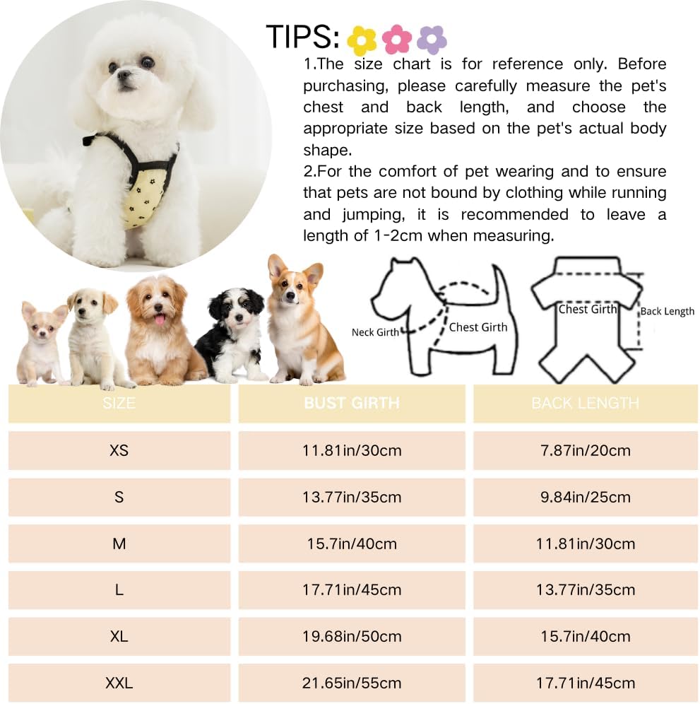 الحجم الرسم البياني: فستان الحيوانات الأليفة مناسب لمعظم الكلاب الصغيرة ، يرجى قياس تمثال نصفي للكلب ، والرقبة ، وحجم الظهر قبل الشراء ، يرجى استخدام شريط قياس وترك عرض إصبعين بين محيط رقبة الكلب ، للتأكد من أن الكلب لا يشعر بالضيق.