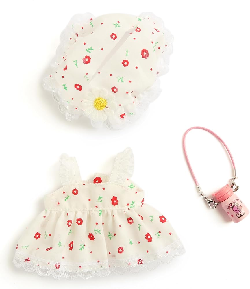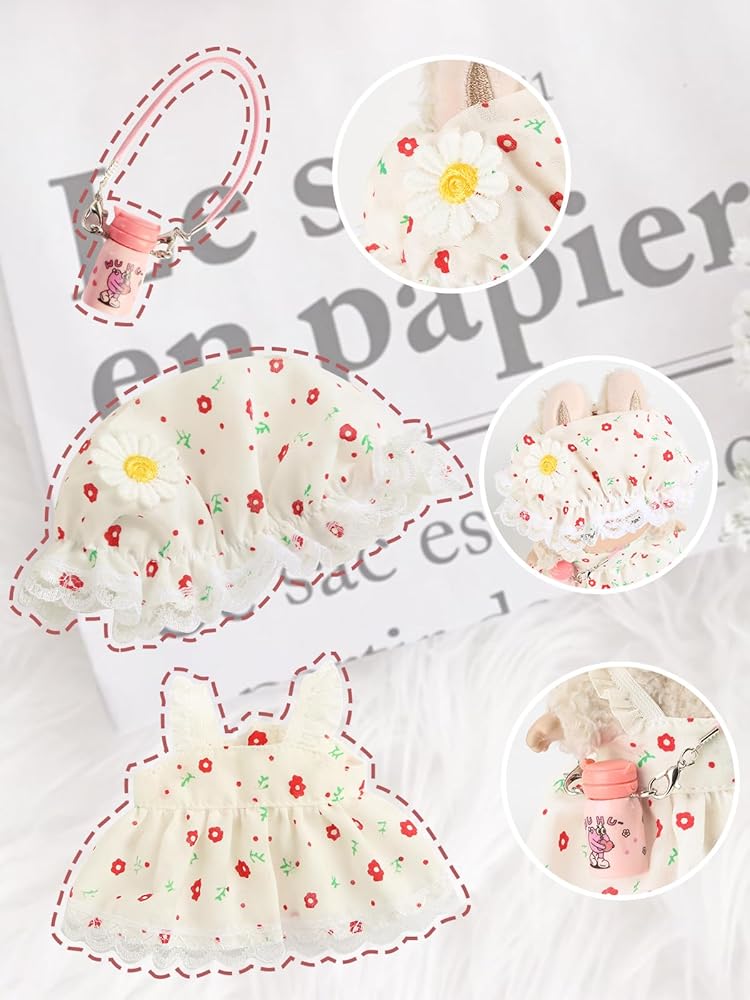 تصميم ساحر : فستان زهري رائع مع حواف الدانتيل وقبعة الشمس المطابقة ، والتي تتميز بلمسات زهرة حلوة. يحول دمية أفخم 17 سم إلى حديقة - حزب كتي.