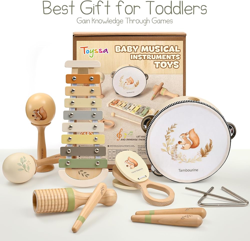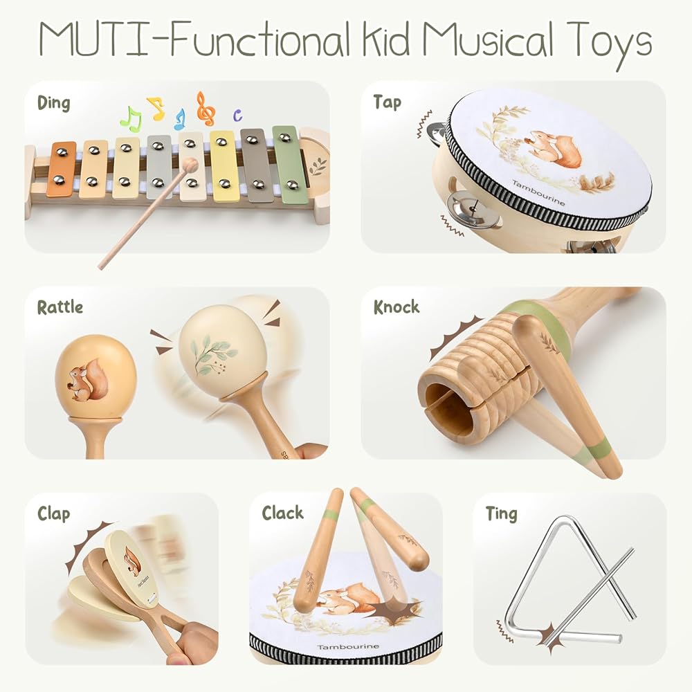 خشب الزان الممتاز: مصنوعة من خشب الزان ، توفر ألعاب الأطفال الخشبية هذه قبضة ناعمة ومريحة ، مثالية للأيدي الصغيرة للاحتفاظ بها واللعب. يعزز نسيج الخشب الطبيعي التجربة الحسية ، في حين أن البناء القوي يسمح ببناء الطبول الذي لا نهاية له ، والتنصت ، والهز. تزين مطبوعات السنجاب الرائعة من Maracas ، Tambourine ، و Castanet ، مضيفًا سحرًا لعوبًا لكل قطعة. سواء كان ذلك أو تهتز أو يصفق على طول الإيقاع ، تم تصميم هذه الآلات الموسيقية للأطفال الصغار 1-3 لاكتشاف موسيقي