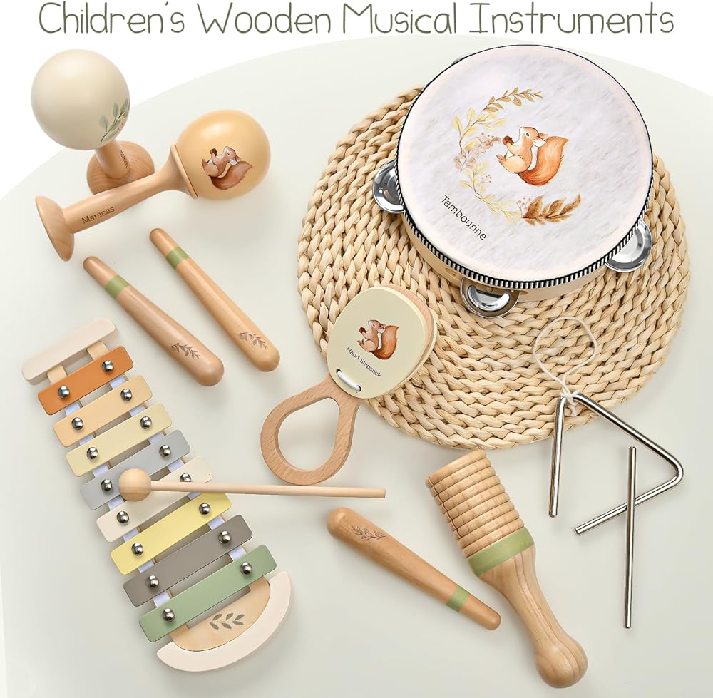 الآلات الموسيقية الخشبية للألواح الصغار 1-3 ، مونتيسوري تويز آلات الإيقاع الطفل مع نمط السنجاب ، أطفال ما قبل المدرسة ، هدايا عيد ميلاد عيد الميلاد للبنين والبنات