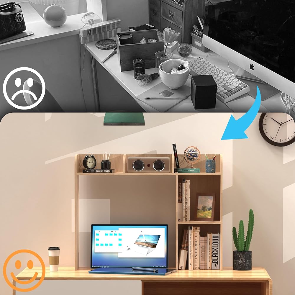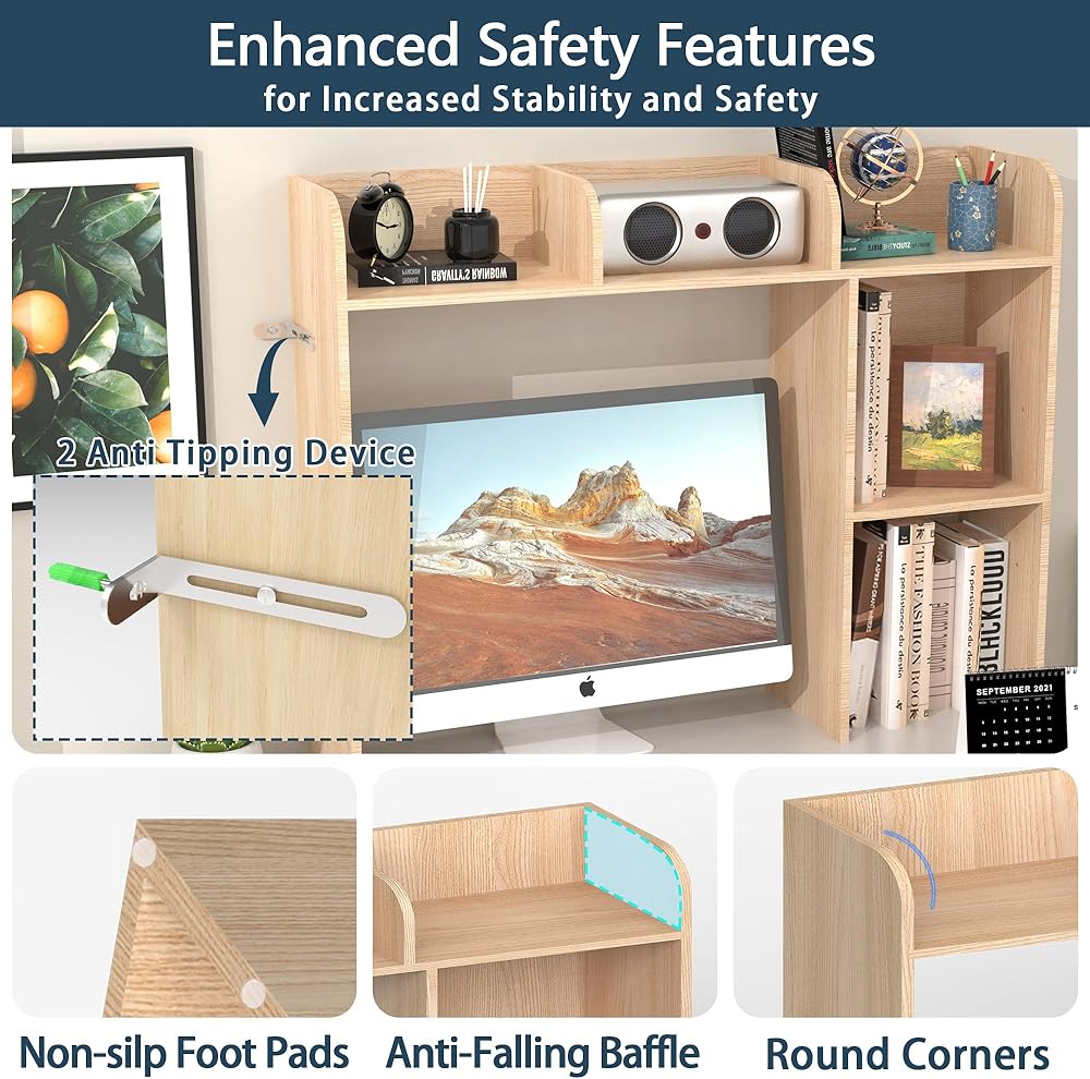✅ حفظ سطح المكتب الخاص بك منظم: تم تصميم رف كتب سطح المكتب هذا خصيصًا لمكاتب الكمبيوتر ، مما يوفر تخزينًا وافًا يمكن أن يستوعب ما يصل إلى 27 بوصة شاشة كمبيوتر ، وهو يتميز بثلاث أرفف علوية واثنين من المقصورات الجانبية الكبرى لتصنيفها السهل على العناصر الخاصة بك.