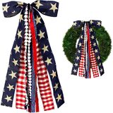 Large patriotic ribbon bow for wreath, attractive and unique, have classic patriotic theme pattern, can well match patriotic holiday. These classic ornament bows are suitable for different kinds of occasions, can serve you for a long time, add a happy and warm holiday atmosphere.