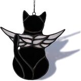 Black Cat Suncatcher for Window: قطة تغادر من سيدها ستتحول إلى ملاك. يمكن استخدام نافذة زجاجية ملطخة معلقة مع قطة ملاك أسود على السحابة كأشعة الشمس للنوافذ الداخلية ، أو شنقات النوافذ الزجاجية الملون ، أو الزخارف القاسية لغرفتك. جاهز للاستمت