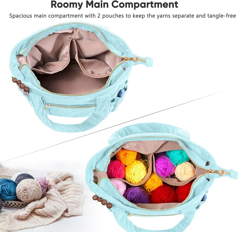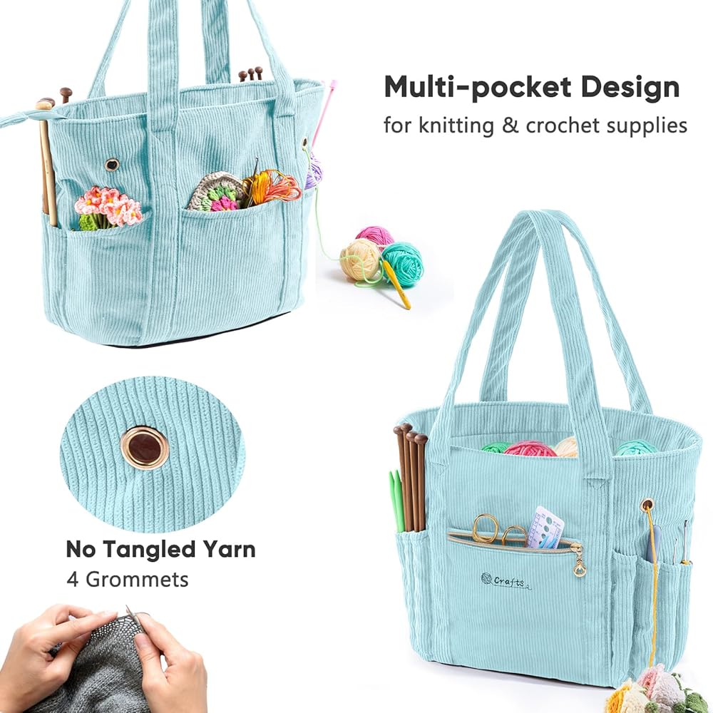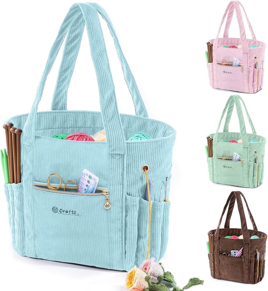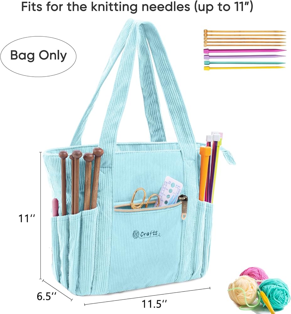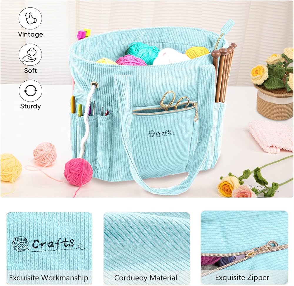 • 【🧶 حقيبة Corduroy Craft Vintage】-منظم الكروشيه الأنيق المصنوع من سروال عالي الجودة وبطانة ناعمة. قوي وخفيف الوزن ومثالي للصياغة أثناء التنقل. ترقية أنيقة من أكياس تخزين الغزل النموذجية.