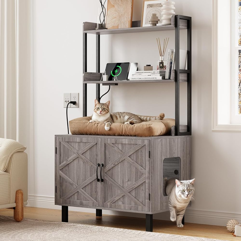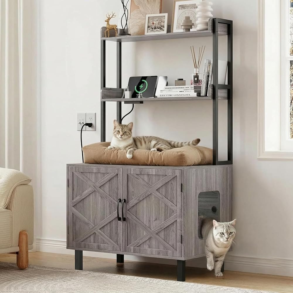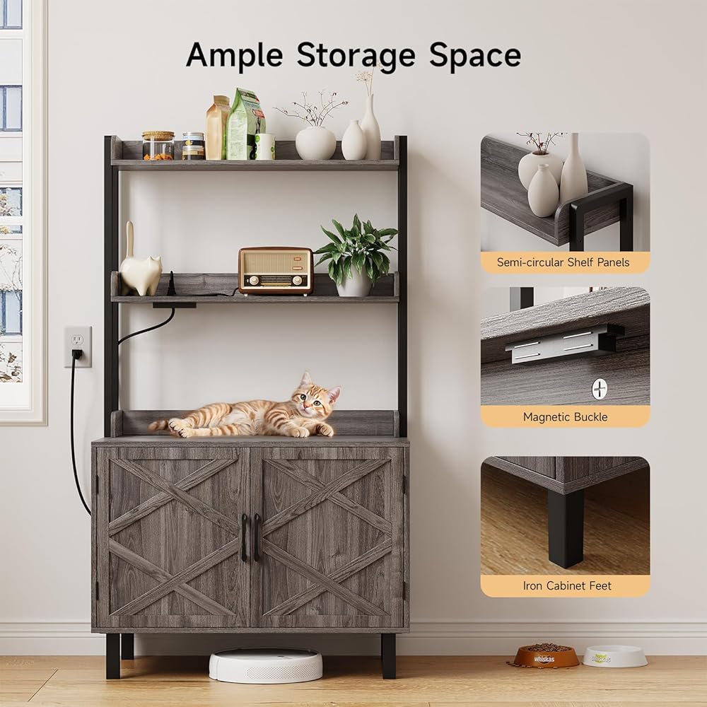 • حاوية صندوق القمامة مع مآخذ التوصيل : تشتمل حاوية صندوق القمامة الكبيرة هذه على منافذ الطاقة لشحن صناديق القمامة الكهربائية بسهولة ، ومغذيات تلقائية ، وأكثر من ذلك. لأمن القطط ، تم تصميم مقبس الطاقة ليتم تثبيته على الرف الثاني لتجنب القطط من لمسه عن طريق الخطأ!