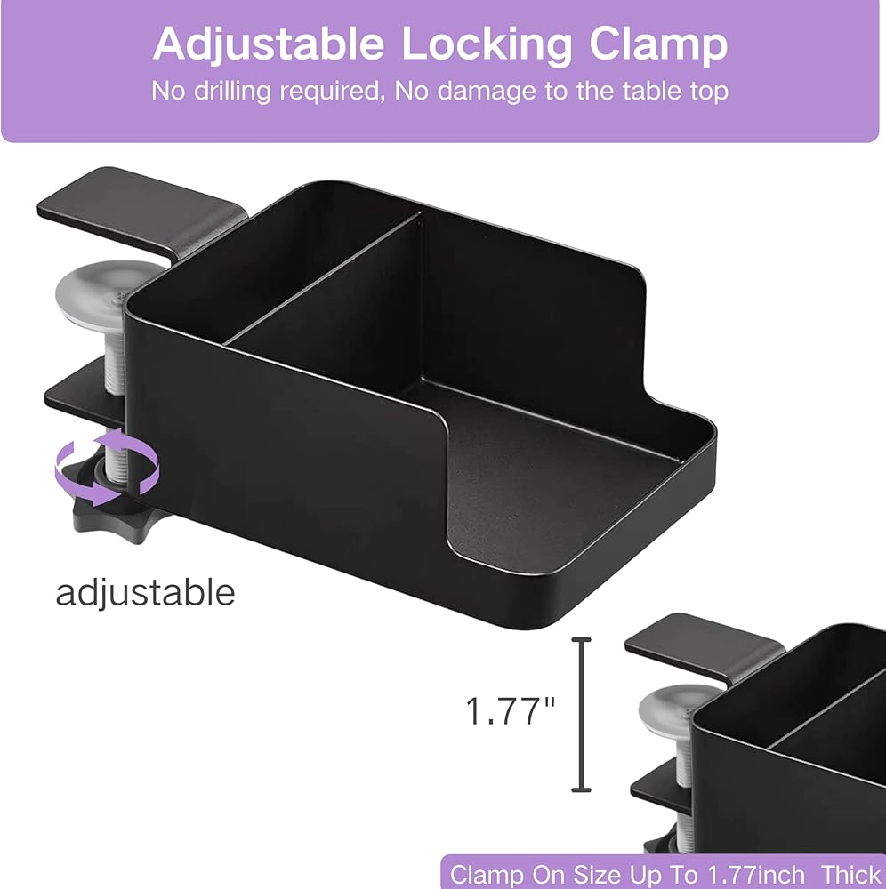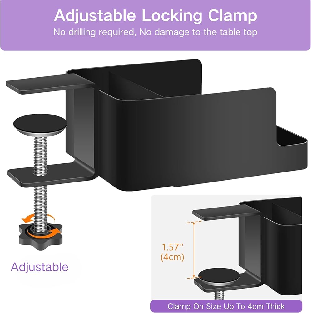 🛠 مربع تخزين متعدد الوظائف: مقطع حامل سطح المكتب هذا يناسب لوحات المكتب من 0.47 إلى 1.58 بوصة ، مثالية للمكاتب المنزلية ، المساكن ، والفناء. لا توجد أدوات مطلوبة - فقط قم بتخزينها لتخزين الكؤوس أو الهواتف أو أجهزة التحكم عن بعد. تثبيت سريع وسهل في أي مكان!