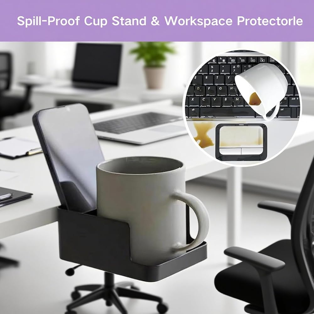 📱 2-in-1 كوب حامل والهاتف الذكي: يحمل منظم سطح المكتب أكوابًا ويضاعف كحامل هاتفي. يتميز الجزء السفلي بفتحة صغيرة للوصول إلى كبل الشحن السهل ، مما يجعل من السهل شحن هاتفك أثناء تخزينه.