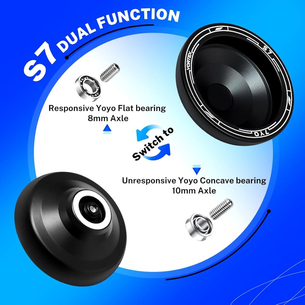 • الوظيفة المزدوجة الغرض Yoyo: 7yo S7 وضع اللعبة المزدوج يوفر Yoyo لعب Yoyo استجابة للمبتدئين ولعب Yoyo غير مستجيب للمستخدمين المتقدمين. في الوضع المتجاوب ، يعود Yoyo إلى يدك بسحب لطيف ، وهو مثالي لأولئك الجدد في Yoyo أو أسلوب اللعب الأكثر استرخاء. قم بالتبديل إلى وضع Yoyo Pro غير المستجيب للحصول على المزيد من الحيل المتقدمة ، والذي يتطلب ملزمة لإعادة Yoyo غير المستجيبة إلى يدك ، وهي مثالية للاعبين ذوي الخبرة الذين يتطلعون إلى تحسين مهاراتهم