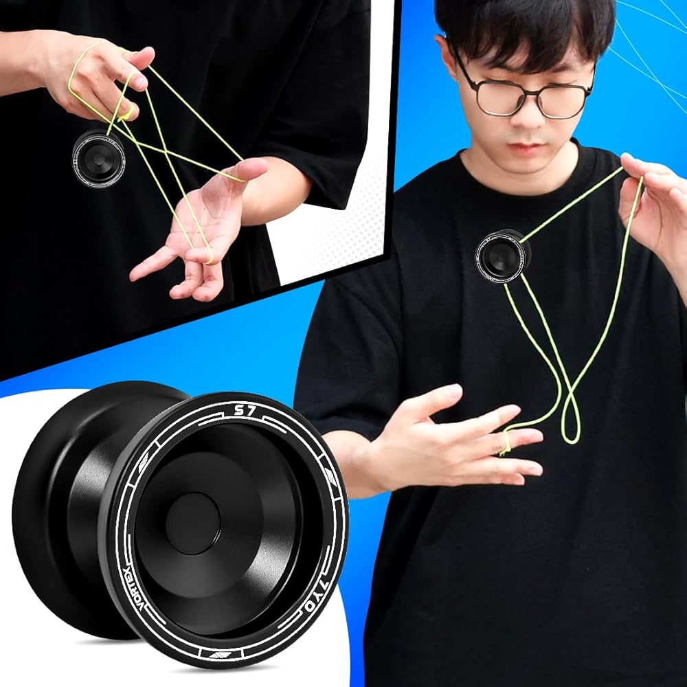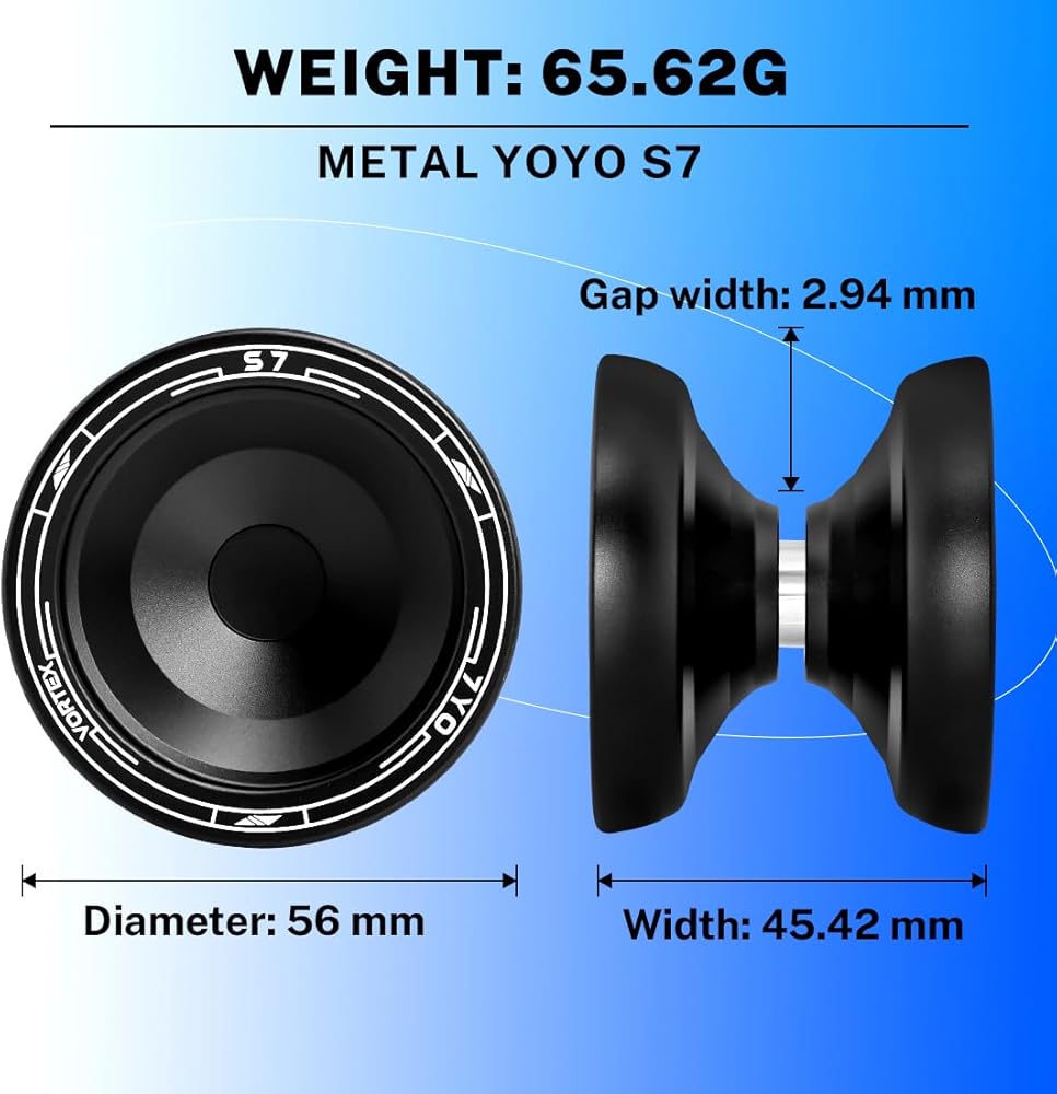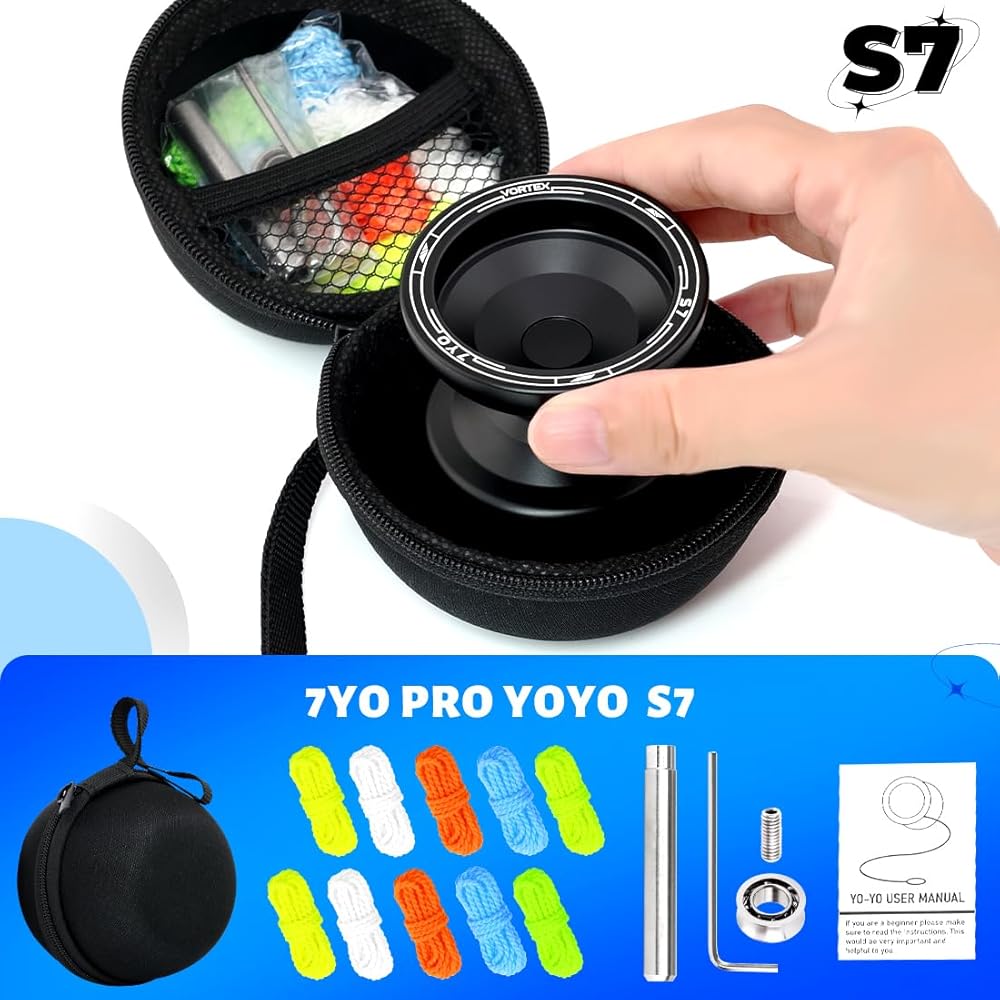 7yo S7 المعادن المهنية خدعة Yoyo yoyos غير مستجيبة للأطفال 8-12 والبالغين Yoyo ، مع مجموعة المحمل ، 10 سلاسل ، وحالة 6061 سبيكة الألومنيوم Yo-Yo
