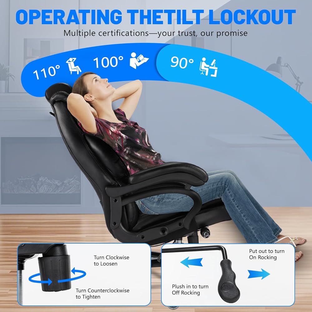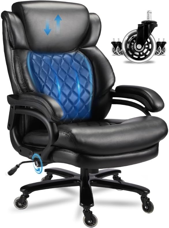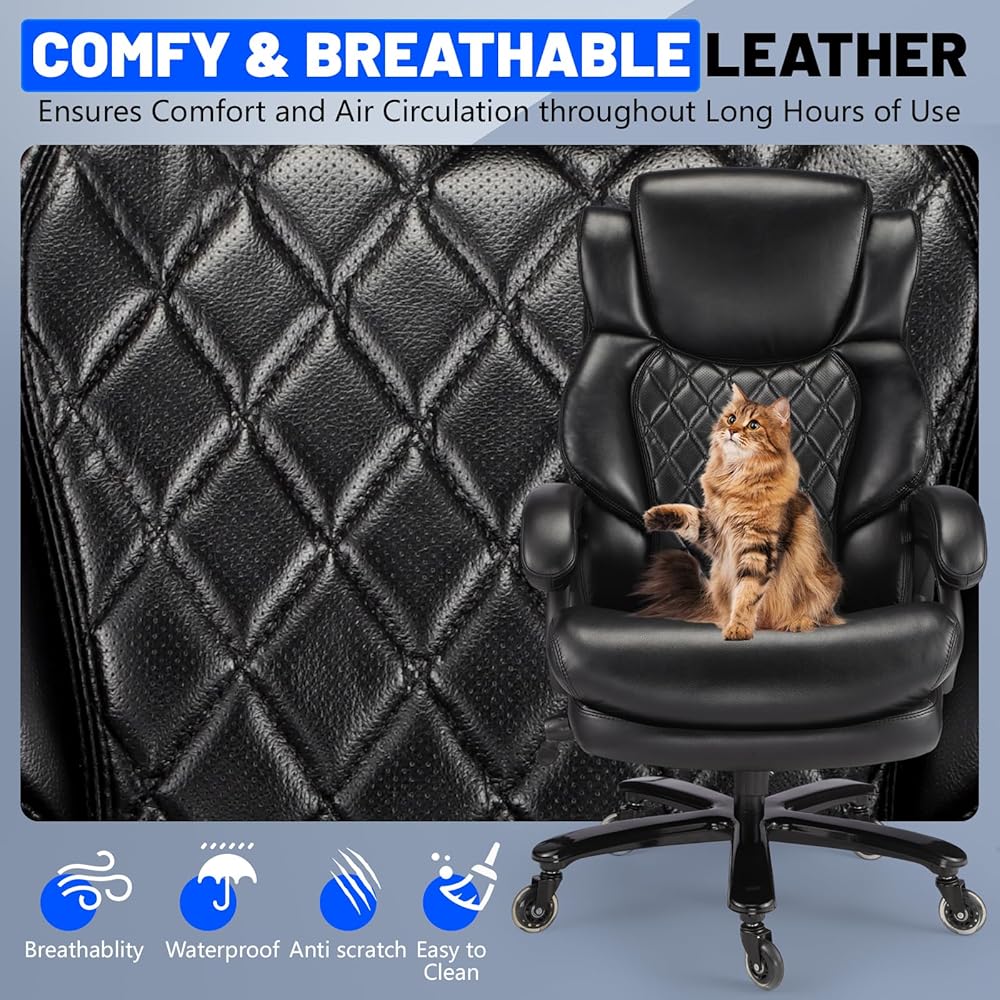 كرسي مكتبي كبير وطويل 600 رطل ، كرسي تنفيذي مع مسند رأس قابل للتعديل ، مقعد عريض للغاية ، جلود شديدة التحمل للمكتب المنزلي ، كرسي مكتب كمبيوتر كبير مريح