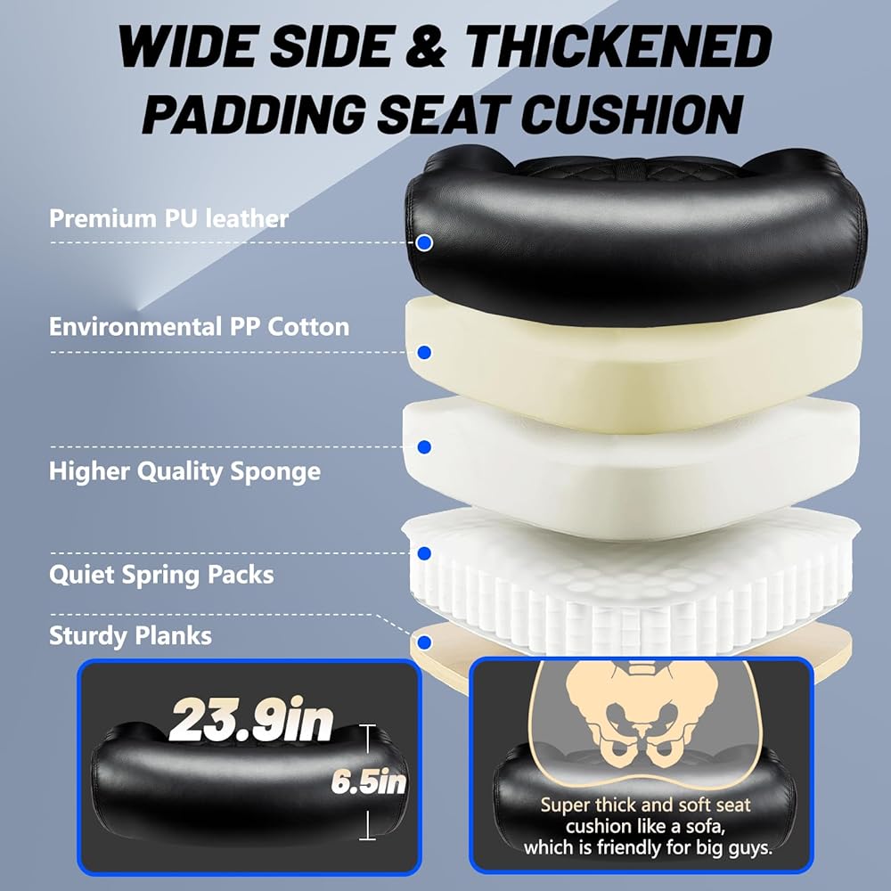 ⚡ [كرسي مكتب مريح للجلوس طوال اليوم] مقعد رغوة الذاكرة السميك (6.5 بوصة!) وجلد بوريس ناعم مثل مقعد سيارة فاخر. مثالي للأشخاص الثقيلين ، مريح حتى بعد ساعات من الاستخدام ، يظل أحد أفضل الكراسي المكتبية لساعات طويلة ، ويتميز بمسند لزائد الحجم.