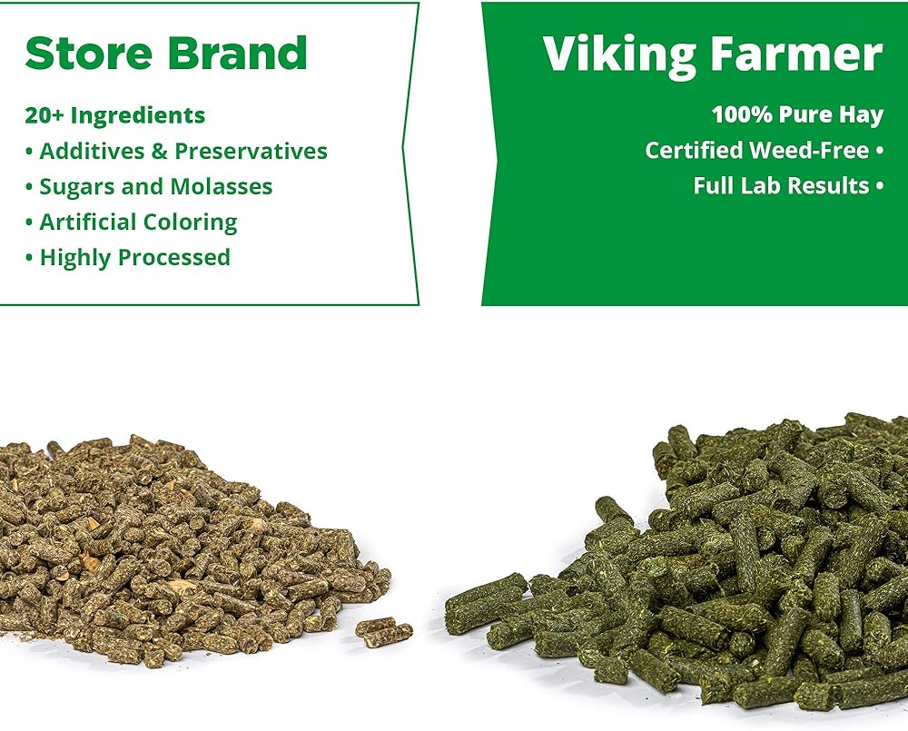 PERFECTION IN A PELLET: While other pellets have ingredients you can't pronounce, Viking Farmer's pellets have only one ingredient: nutrient-rich hay that was sun cured to perfection. We wouldn't feed ultra-processed pellets to our pets, and neither should you.