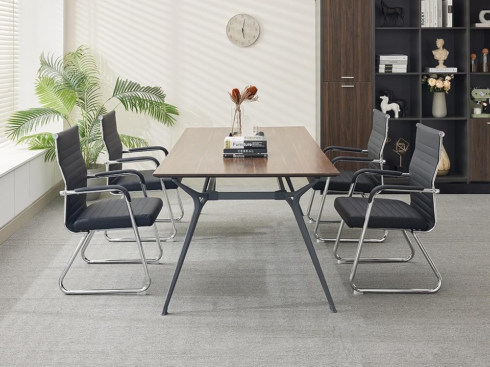 【الراحة المريحة】 التصميم المنحني بشكل مريح والدعم القطني المناسب ومساند الذراعين يدعمون ظهرك بشكل مثالي ، والحفاظ على وضعك ومنع آلام الظهر. يجلب لك سطح PU الجلدي المقاوم للارتداء مشاعر مريحة للغاية ، ويسمح لك بالتجول في وقت الاجتماع في الراحة.