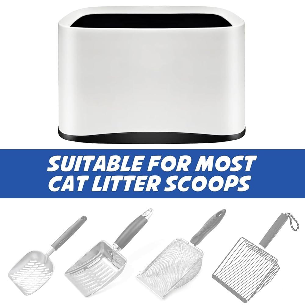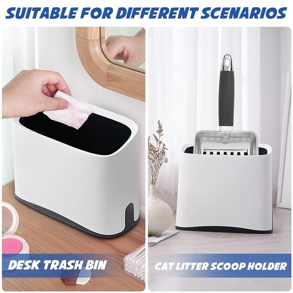 Universal Cat Litter Scoop Holder-Kitty Litter Scooper Caddy for Litter Box-Sturdy Scoop Stand Trash Container Suitable for Most Metal Litter Scooper-White
